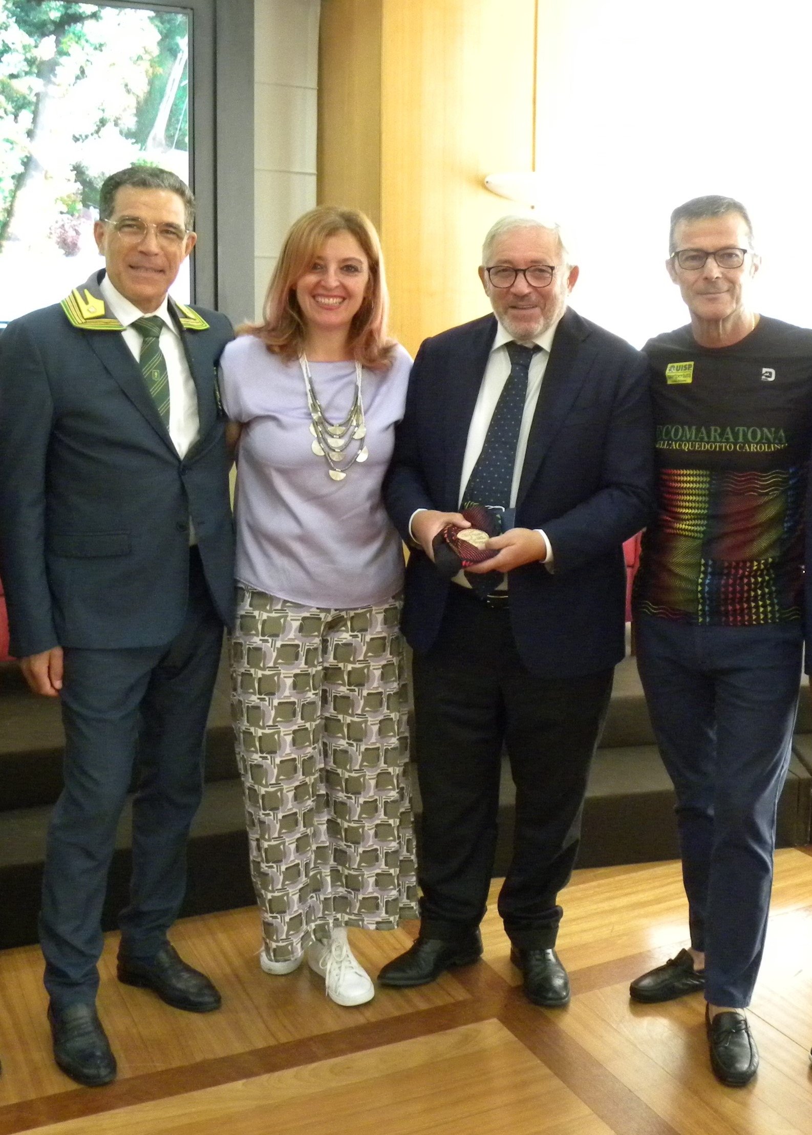 CASERTA. Il centro di arte e tradizione orafa eccellenza ben conosciuta con il nome Tarì dove vivono 400 aziende con un’esperienza di aggregazione e di grande organizzazione ha disegnato e inciso la medaglia dell’evento Vanvitelliano di sport, attualità e solidarietà. Il capolavoro nella sua bellezza mette in risalto il percorso affrontato dagli atleti e i comuni che hanno attraversato. La presentazione è avvenuta nella grande sala di conferenza, particolarmente partecipata con lo splendido susseguirsi di immagini delle passate edizioni alle spalle dei relatori. Al tavolo dei relatori il presidente del “Tarì” Vincenzo Giannotti a lui il compito di mostrare il premio celebrativo, Amalia Di Martino, (vice presidente Fidal Campania) Giuseppe Farina, (presidente ANFI Maddaloni) Antonio Marciano (presidente del C.R. UISP). Lucia Grimaldi (giornalista) in veste di moderatrice della conferenza ha fatto intervenire altre autorevoli persone presenti in sala. A brevi giorni, nella sala convegni della Reggia di Caserta l’Organizzazione alla presenza della direttrice Tiziana Maffei presenterà l’intero programma dell’appuntamento con la parte tecnica, il percorso e i nomi dei cento e più atleti in gara, mettendo in luce l’intendo solidale di grande spessore nato dalla prima edizione; inoltre si parlerà del territorio e dei comuni interessati dove scorre l’acqua per caduta grazie al progetto ingegneristico realizzato da Vanvitelli lungo circa 45 chilometri che dalla sorgente del Fizzo porta l’acqua alla Reggia di Caserta.