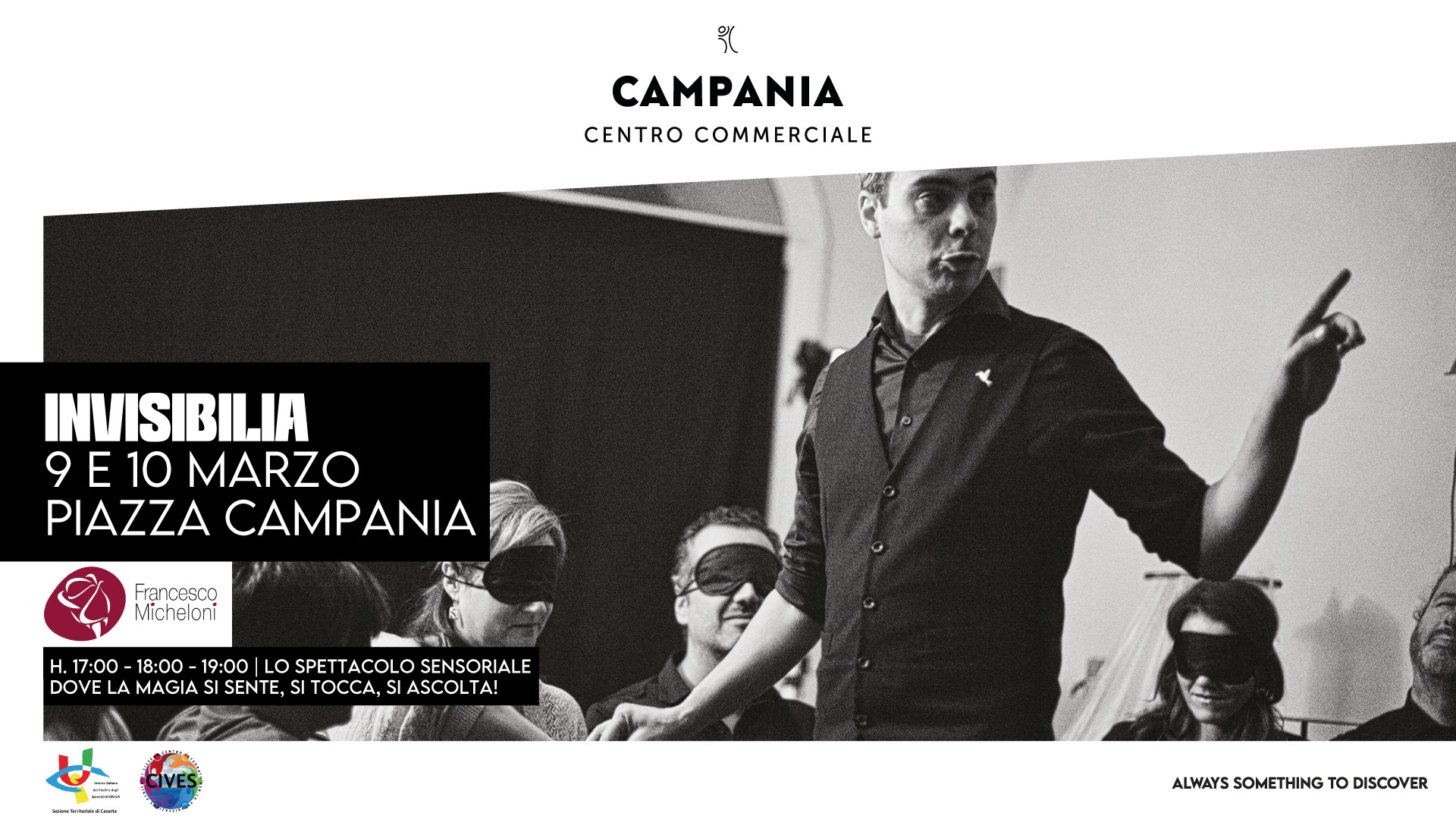 Il 9 e 10 marzo Centro Commerciale Campania ospita Invisibilia, il primo spettacolo di magia in Italia pensato per persone non vedenti e ipovedenti, capace di coinvolgere allo stesso modo anche il pubblico vedente. Invisibilia è uno spettacolo inclusivo “al contrario”: le persone vedenti possono assistere all’esperienza solo bendandosi, rinunciando volontariamente alla vista per entrare in una dimensione percettiva nuova, profonda e sorprendente. Un invito a rallentare, ascoltare e immaginare, ribaltando la prospettiva in un mondo dominato dalle immagini.