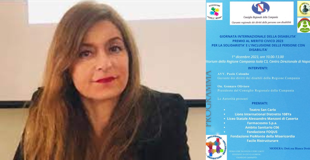 In occasione della Giornata Internazionale della Disabilità, si è tenuta alle ore 10:00 presso l’Auditorium della Regione Campania Isola C3, Centro Direzionale di Napoli, la cerimonia di consegna del prestigioso “Premio al Merito Civico Civico 2023”.