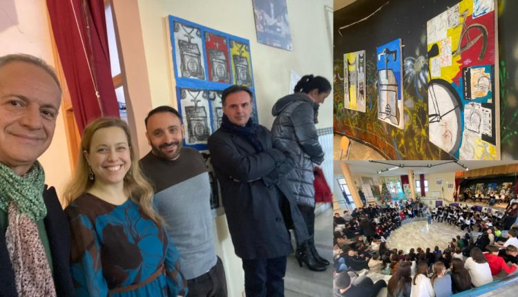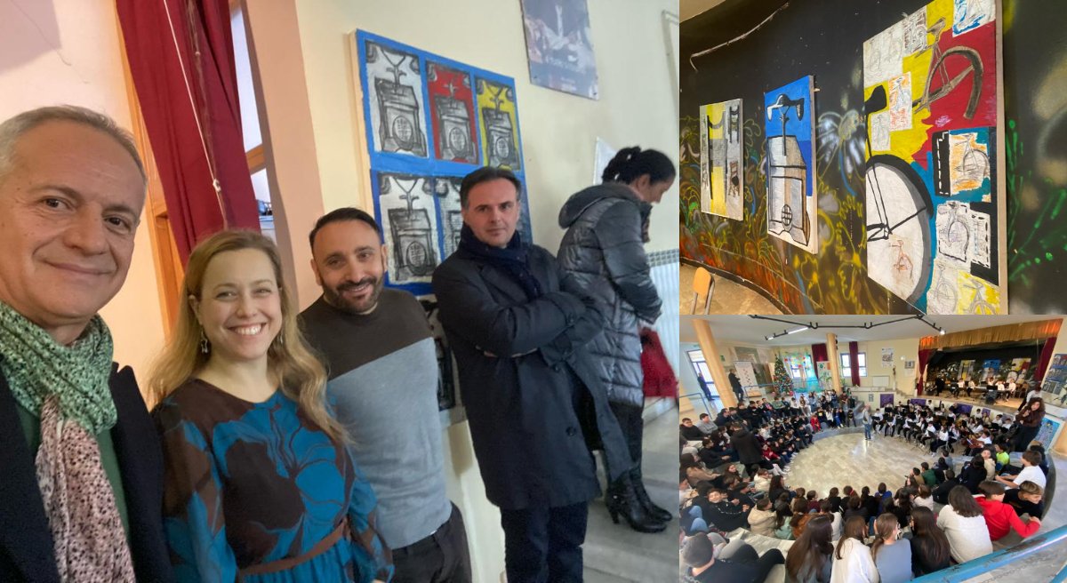 Presenti inoltre la Vicepreside, prof.ssa Anna Uttieri, che ha coordinato con grande professionalità l’organizzazione in sede e gli artisti: Elena Dell’Andrea, docente di sostegno alla Buonarroti di Mondragone, abilitata in Arte Immagine; Rocco Sciaudone, docente di Arte Immagine presso l’IC Carinola-Falciano e Alessio Scotti, docente di Arte Immagine presso l’IC Serao-Fermi di Cellole.