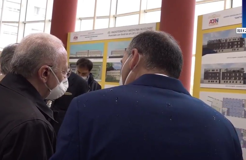 L’occasione si è presentata per l’inaugurazione della terza sala di emodinamica e l’avvio dei lavori di ampliamento del Pronto Soccorso. Il direttore generale Gaetano Gubitosa, affiancato dal Direttore Sanitario Angela Annecchiarico, e dal Direttore Amministrativo, Amalia Carrara, ha accolto il governatore nella hall principale dell’Ospedale, dove gli ha illustrato gli interventi di edilizia sanitaria e il relativo stato di avanzamento relativi ai lavori di demolizione e ricostruzione dell’edificio G, che tornerà ad ospitare l’Unità operativa Malattie Infettive e Tropicali con i relativi ambulatori, ma che sarà anche la nuova sede dei laboratori e ambulatori delle Unità operative Microbiologia Generale e Biologia Molecolare; la realizzazione di un edificio a tre piani destinato a bunker per Radioterapia, obiettivo prioritario dell’attuale direzione ospedaliera, e Medicina Nucleare, ma anche all’Unità Spinale con piscine per la riabilitazione funzionale; la realizzazione di un edificio a due piani dedicato a piastra operatoria. “Stiamo guardando al futuro -ha dichiarato il Direttore Generale- in termini di potenziamento e miglioramento dei servizi per il cittadino”. Dopo la benedizione del vescovo Pietro Lagnese alla terza sala di emodinamica con attrezzature all’avanguardia, illustrate dal Direttore del Dipartimento Cardio-Vascolare, prof. Paolo Calabrò, la giornata evento si è conclusa in aula magna dell’ Ospedale di Caserta.