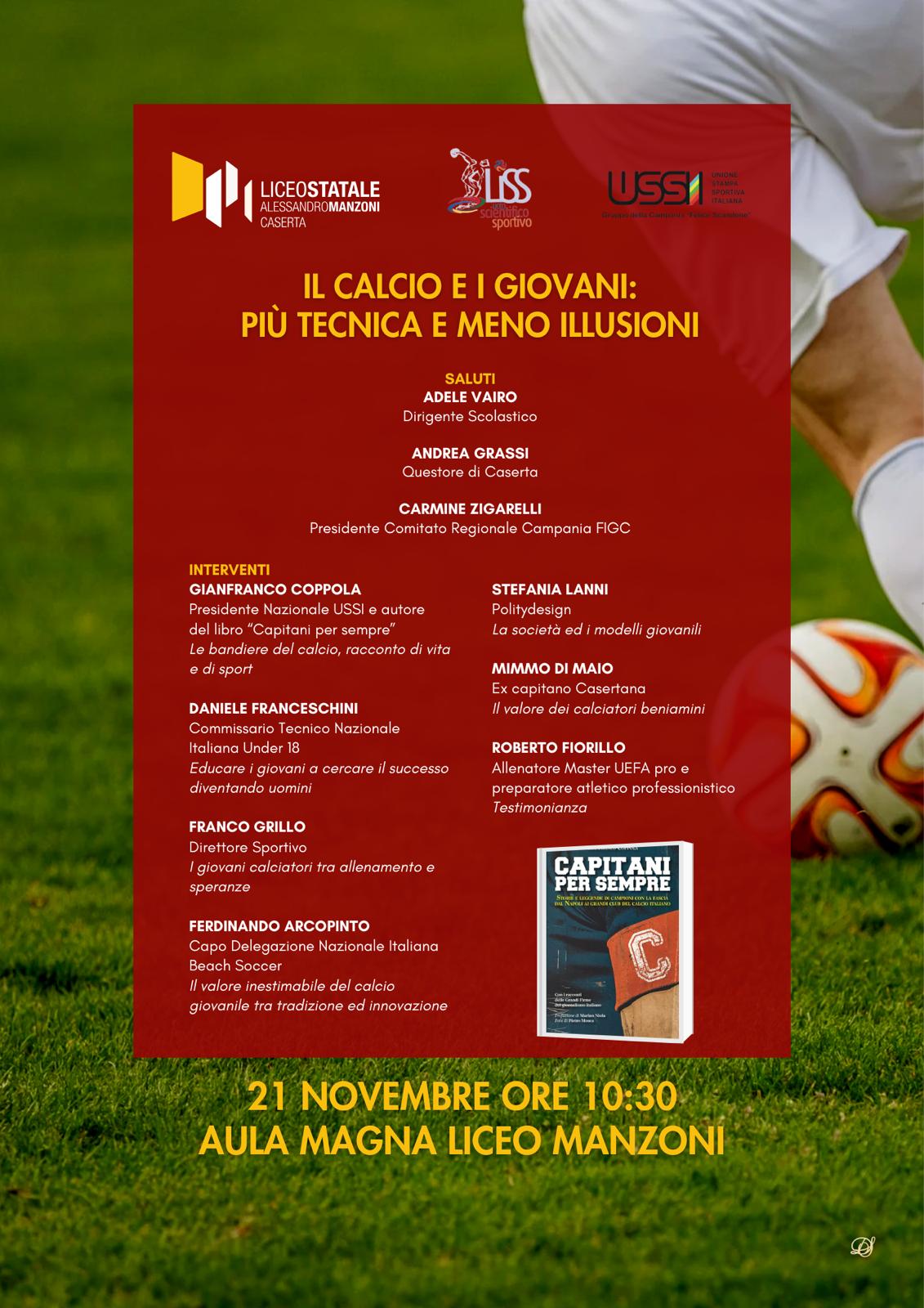 Considerata la portata dell’evento, apriranno i lavori, insieme alla promotrice dell’iniziativa- la Dirigente del Campus Manzoni il Questore di Caserta, e , presidente comitato Regionale Campania FIGC. Interverranno , presidente USSI e autore del libro ; , CT nazionale under 18; , Direttore sportivo; , Capo delegazione nazionale Beach Soccer; la giurista ; l’ex capitano della Casertana Calcio ; , docente di scienze motorie del Liceo Manzoni, già allenatore Master Uefa Pro e Preparatore Atletico.
