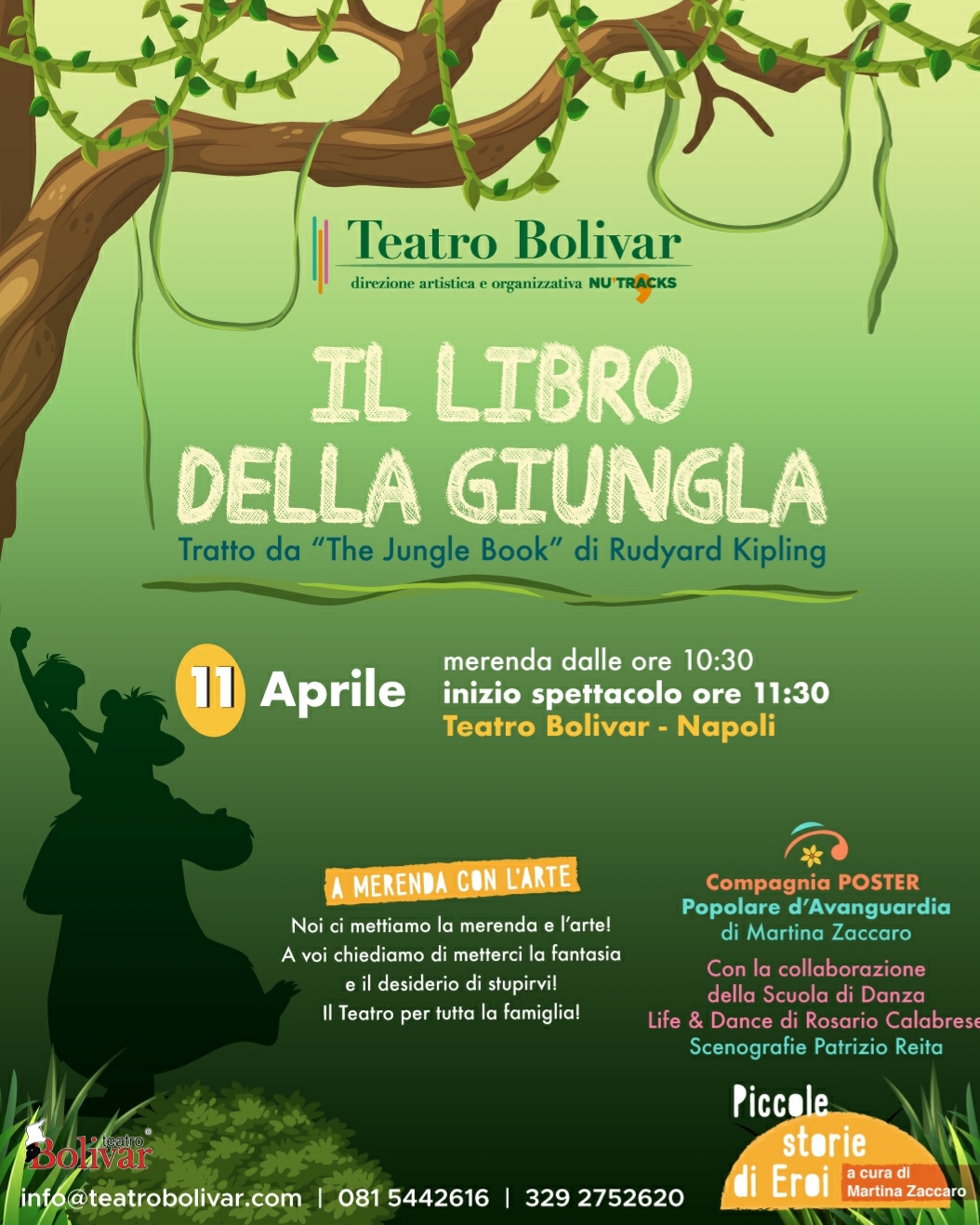 SABATO 11 APRILE AL TEATRO BOLIVAR ARRIVA IL LIBRO DELLA GIUNGLA PER LA RASSEGNA “PICCOLE STORIE DI EROI – A MERENDA CON L’ARTE”