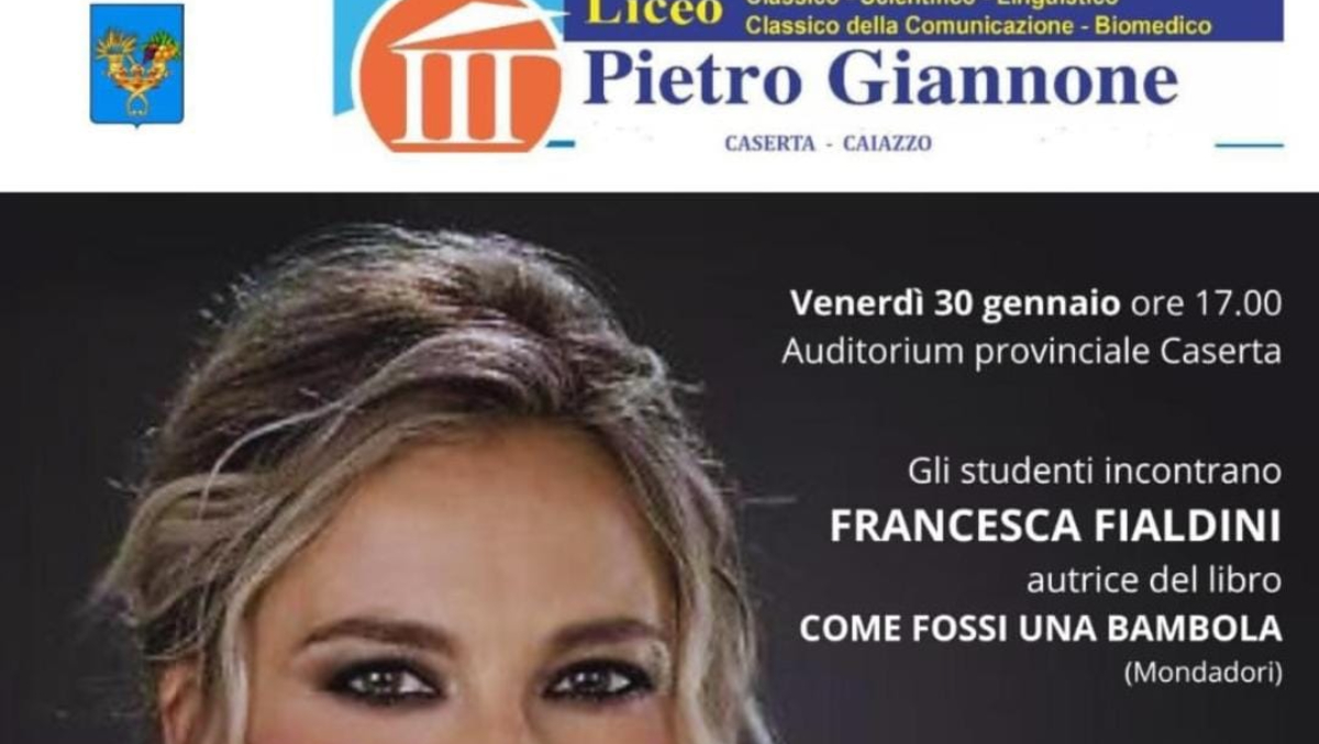 Il Liceo Classico e Scientifico “Pietro Giannone” di Caserta ritorna protagonista di ben due eventi incentrati sull’educazione affettiva, tema più che mai scottante ai nostri giorni, e lo fa con un’ospite d’eccezione, la nota conduttrice Rai Francesca Fialdini. La giornalista, che è già stata coinvolta durante lo scorso anno scolastico in un confronto con le studentesse e gli studenti del Liceo sulla tematica dei disturbi alimentari in occasione della presentazione del suo libro Nella tana del coniglio, ritorna venerdì 30 gennaio 2026, alle ore 17:00, presso l’Auditorium provinciale di Caserta e sabato 31 gennaio alle ore 11:00 presso la sala conferenze della sede di Caiazzo, per dialogare sul suo ultimo lavoro, scritto insieme allo psicoterapeuta Massimo Giusto, dal titolo Come fossi una bambola.
