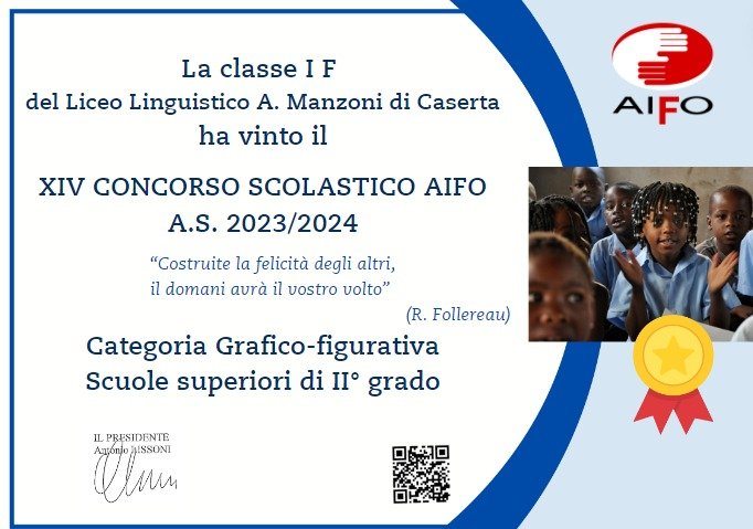 La vittoria al Concorso AIFO rappresenta un’ulteriore conferma dell’eccellenza formativa del Liceo Linguistico A. Manzoni di Caserta, che si impegna a promuovere nei suoi studenti non solo competenze linguistiche e letterarie, ma anche valori di cittadinanza attiva e responsabilità sociale.