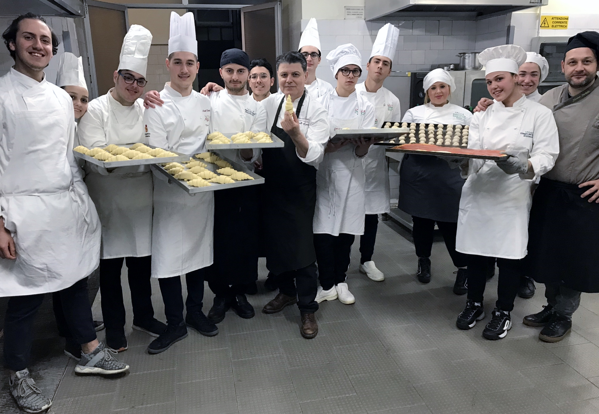 Per gli studenti, la prima giornata del corso, in cui, per l’occasione, il Maestro Di Caprio ha illustrato ai ragazzi le “personali” tecniche di lievitazione, impasto, preparazione, farcitura e cottura dei cornetti e della pizza, oltre che altre raffinatissime creazioni e segreti di pasticceria. A margine della lezione, agli studenti è stata data la possibilità di porre domande e curiosità sul mondo dell’alta formazione pasticcera e sul ventaglio (ampio) di opportunità lavorative post-diploma.