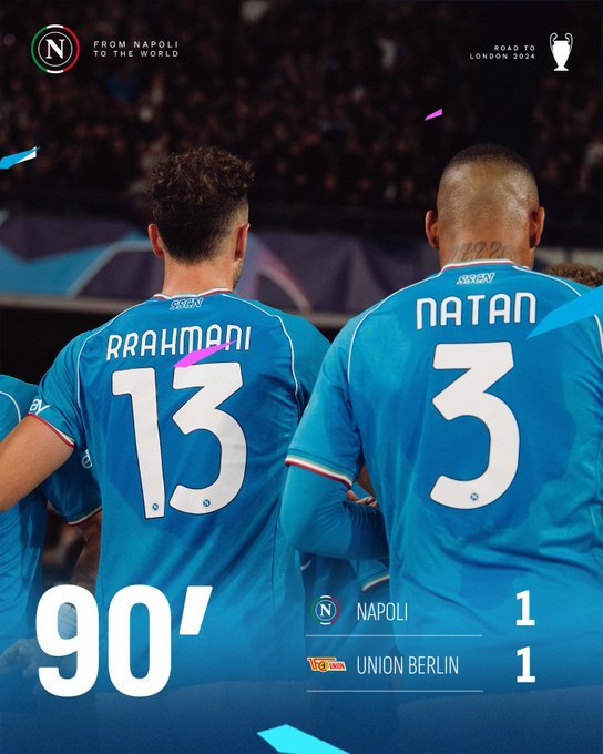 Il cammino in Champions non è assolutamente compromesso, vista la vittoria del Real Madrid sul Braga, agli azzurri serve un punto da racimolare in queste due ultime gare, impresa non difficile da compiere, una qualificazione che resta comunque aperta per la squadra di Garcia che mantiene il secondo posto salendo a 7 punti.