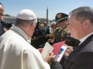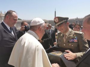 Papa Francesco ha voluto incontrare personalmente, al termine dell’Udienza Generale tenutasi mercoledì, 26 giugno 2019, in Piazza San Pietro, il Comandante della Brigata Bersaglieri “Garibaldi”, Generale di Brigata Diodato Abagnara, accompagnato dal Cappellano Militare don Claudio Mancusi, rientrati di recente dall’operazione “Leonte XXV” della Missione UNIFIL in Libano, dove la Brigata “Garibaldi” ha avuto la responsabilità della Joint Task Force-Lebanon Sector West.