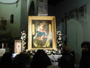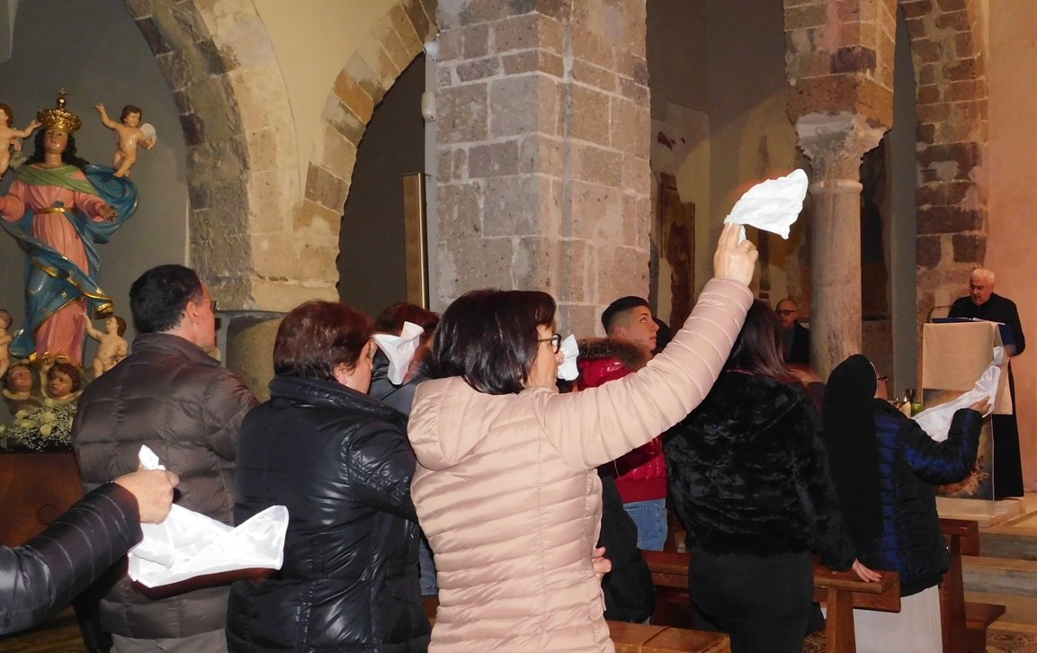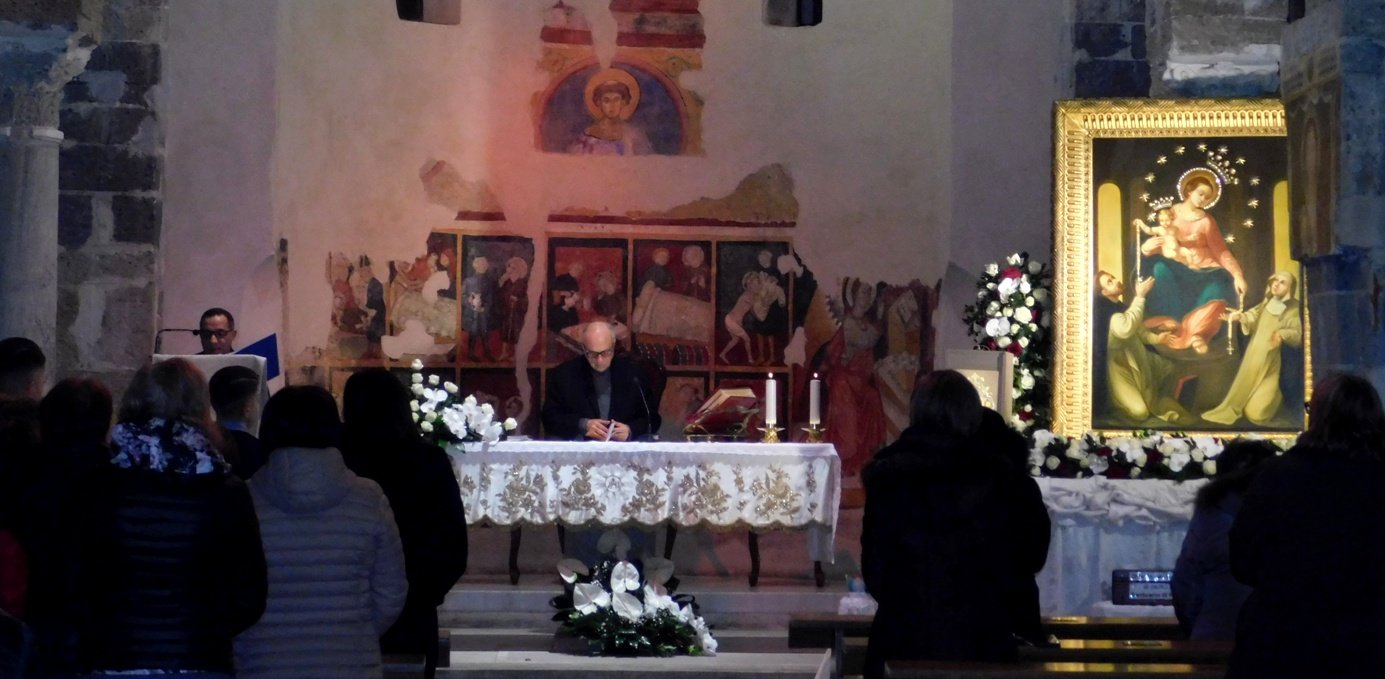 SANTA MARIA LA FOSSA (Raffaele Raimondo) – Una grande concelebrazione eucaristica, presieduta dall’arcivescovo prelato di Pompei mons. Tommaso Caputo, ha dato inizio, nel dì di Santa Lucia, alla Missione Mariana del Rosario presso la Parrocchia Maria SS. Assunta in Cielo avveratasi per iniziativa del suo premuroso pastore, don Pasquale Buompane, e della fervente comunità dei fedeli. Il Quadro della Madonna proveniente dalla principale “città mariana” d’Italia, giunto nel pomeriggio a Santa Maria la Fossa presso l’Istituto delle Suore Francescane dei Sacri Cuori e acclamato dalle autorità locali e dalla folla in giubilo, è stato trasferito in processione nella bellissima chiesa benedettina dell’11°secolo dove si venera l’amata patròna del piccolo centro che sorge nella pianura del Basso Volturno. Là, in pieno tempo d’Avvento, il secondo fondamentale momento della prima delle quattro giornate missionarie coordinate dai padri don Franco e don Rosario accompagnati da due collaboratori volontari. A sera inoltrata la benedizione delle corone per il Rosario e la catechesi; poi l’esame di coscienza guidato e la commovente “Buonanotte Maria!” cantata, a tutto cuore, sventolando fazzoletti benedetti.