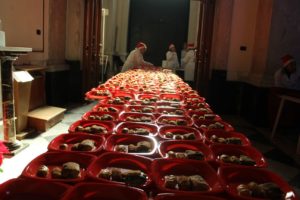 Questo è l’ottavo anno che l’OSA (Opera Sant’Anna) organizza il Pranzo Solidale aiutati da centinaia di volontari e volontarie sempre pronti ad aiutare il prossimo. Racconta don Giovanni Gionti, Presidente OSA, che ogni settimana vengono distribuiti pasti a chi ne ha d’avvero bisogno. L’operato di questi uomini avviene di notte e di giorno, con il freddo o con il caldo e se prima riuscivano a distribuire i pasti solo di Mercoledì e Venerdì, dalla prossima settimana anche il Lunedì sarà un giorno speciale per far tornare il sorriso anche a chi di gioia non più tanta ne ha.