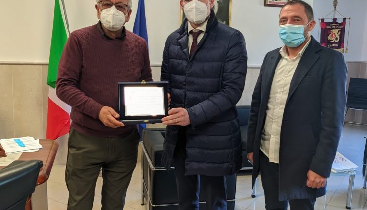 Caserta/ S. Felice a Cancello. Ieri mattina il sindaco del comune di San Felice a Cancello Sig. Giovanni Ferrara si è recato presso il Comando provinciale dei Vigili del Fuoco di Caserta per incontrare il Comandante provinciale Dott. Ing. Carlo Federico. Il motivo della visita è stato quello di consegnargli una targa come segno di ringraziamento e gratitudine per l’impegno profuso da tutti i Vigili del Fuoco in occasione dell’intervento effettuato per il crollo dell’abitazione sita in via Napoli in località Cancello Scalo a seguito di uno scoppio dove hanno perso, purtroppo , la vita i due coniugi Sgambato.