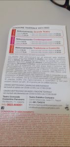 Al Duomo di Casertavecchia, invece in data 27 novembre ci sarà, Canto per un fiore, di Michele Casella ed il 28/11 Giuseppina donna del sud di PierLuigi Tortora.