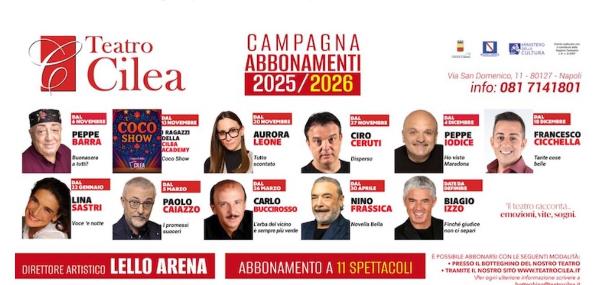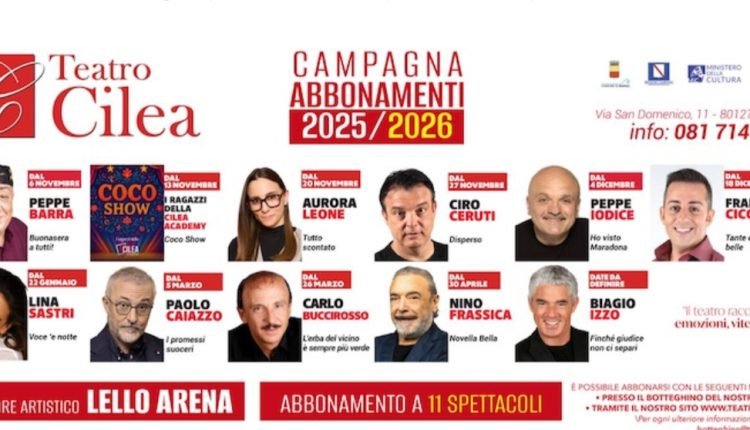 Il Teatro Cilea, autentico punto di riferimento del panorama teatrale napoletano, si prepara a inaugurare una stagione che promette di emozionare, far riflettere e, soprattutto, far ridere. Dopo un anno di sold out e standing ovation, la storica sala del Vomero – guidata dalla visione artistica di Lello Arena – alza ancora l’asticella con una programmazione che fonde la tradizione partenopea con linguaggi contemporanei, celebrando il teatro come luogo di condivisione e di scoperta.