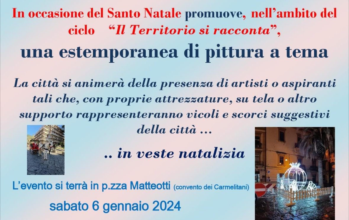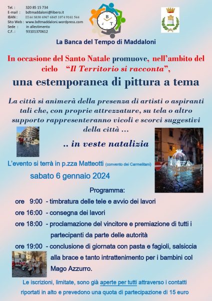 Per questo evento cerchiamo persone che vogliano calarsi nel ruolo dell’artista dedicando un po’ del loro tempo a dipingere il proprio angolo preferito di Maddaloni addobbato per le festività natalizie.