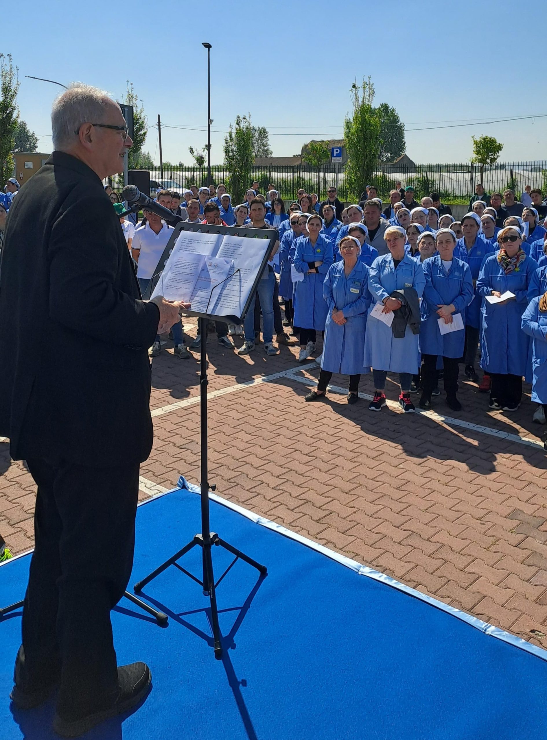 Giunto allo stabilimento di via della Repubblica, il Vescovo di Aversa è stato accolto dalla direzione, per poi visitare le linee produttive. Terminata questa prima fase, l’intera comunità dei lavoratori della cooperativa si è riunita nell’area ristoro all’apertoper riflettere sul messaggio dei vescovi italiani dal titolo “Il lavoro, un’alleanza sociale generatrice di speranza”. Dopo i saluti dell’amministrazione comunale, portati dall’assessore Mary Diana, e quelli della cooperativa “Sole”, espressi dal presidente Antonio Maione, monsignor Angelo Spinillo ha presentato il testocurato dalla Commissione Episcopale CEI per i Problemi Sociali e il Lavoro, la Giustizia e la Pace.