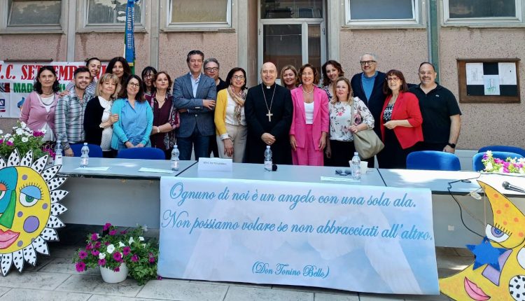 Maddaloni – Il vescovo di Caserta, Mons. Pietro Lagnese, continua ad incontrare i giovani andando nei luoghi che loro vivono di più: le scuole. Questa mattina è stato in visita all’I.C. “Settembrini” di Maddaloni dove, con studenti e docenti, ha tenuto un incontro incentrato sul dialogo sul creato. Partendo dal docu-film “The letter” di Papà Francesco, ci sono state le riflessioni e le domande degli alunni della Scuola Secondaria di I grado , alle quali il Vescovo ha risposto con grande intensità e partecipazione . L’incontro, tenutosi nel “Cortile delle arti “ dell’istituto, è stato allietato dall’esibizione dell’ Orchestra Settembrini, fiore all’occhiello della scuola diretta dalla preside Tiziana D’Errico.