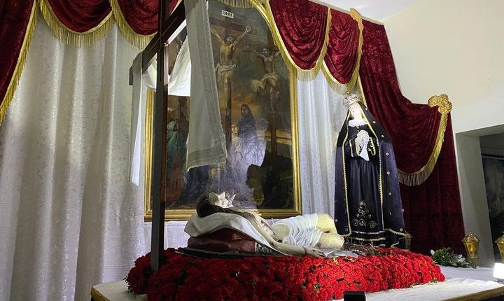 I bisnonni delle donne e degli uomini che oggi si riuniscono nella chiesa di san Simeone per organizzare la via Crucis, nell’ormai lontano 1900 davano vita a questa processione che racconta il dolore della mamma per eccellenza per la morte ingiusta del Figlio che è figlio di ogni mamma, accompagnandola nel suo tragitto che sarà morte e poi rinascita, vita, Pasqua, con un canto antico quanto la processione, un inno all’Addolorata scritto da Luigi Salzano, sempre di Marcianise.