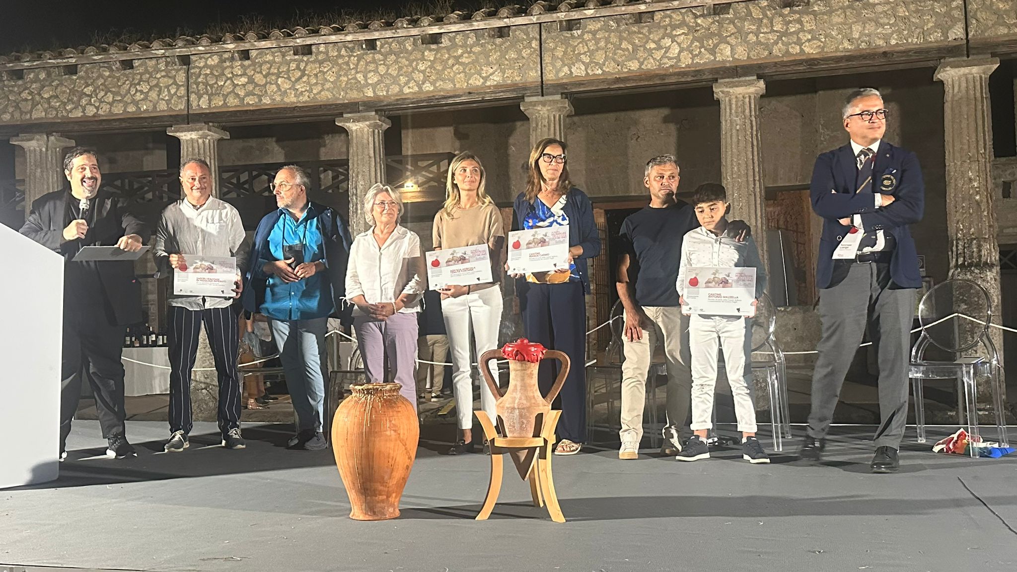 In merito a questo nella serata di ieri sono state aperte due anfore contenenti due vini simbolo di Terra di Lavoro, il Falerno di Villa Matilde e l’asprinio di Tenuta Fontana, azienda che ha fatto un ideale viaggio nel tempo, ricreando il pallagrello dei Borboni grazie alla ripresa del vigneto della Reggia di Caserta. Un’operazione che unisce saldamente storia ed enologia, territorio e riscoperta delle radici per approfondire conoscenze e perfezionarle. L’azienda, insieme ad altre è stata premiata per il suo lavoro ed il suo impegno portando a casa un nuovo prestigioso riconoscimento.