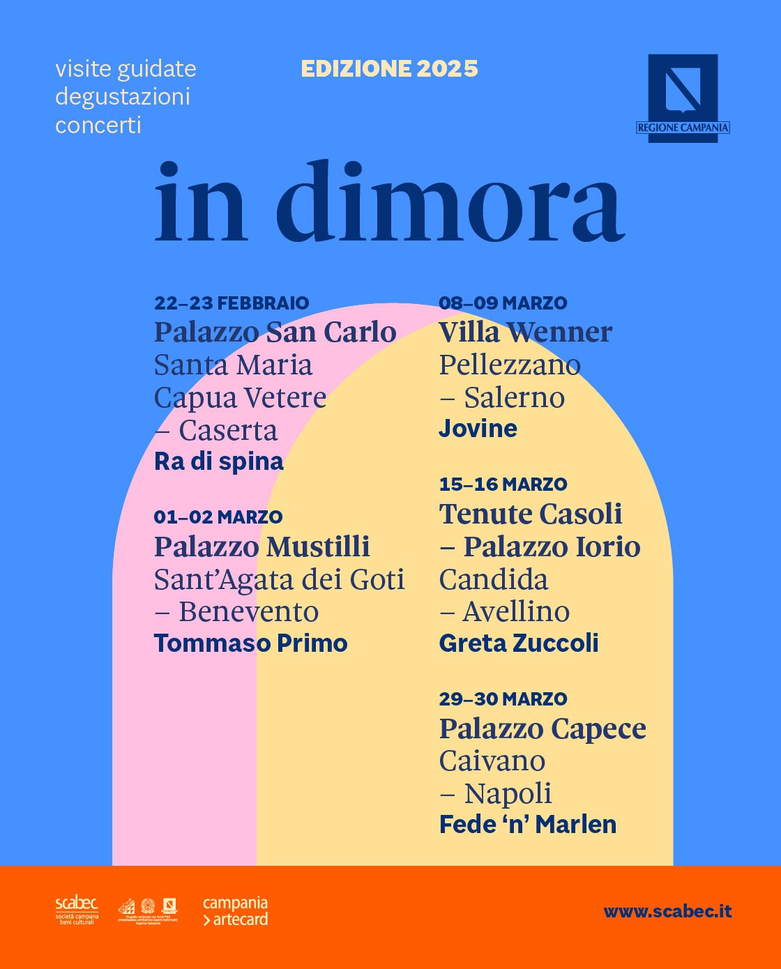 «Grazie a un format che unisce la scoperta del patrimonio storico con l’esperienza musicale, “In dimora” rappresenta un’opportunità straordinaria per avvicinare il pubblico alla ricchezza culturale delle antiche residenze campane – ha dichiarato Pantaleone Annunziata, Amministratore unico di Scabec –. Questi edifici, pur essendo di proprietà privata, custodiscono un’eredità collettiva che merita di essere condivisa. Eventi come questo permettono di valorizzarne la storia e la bellezza, restituendoli simbolicamente alla comunità.»