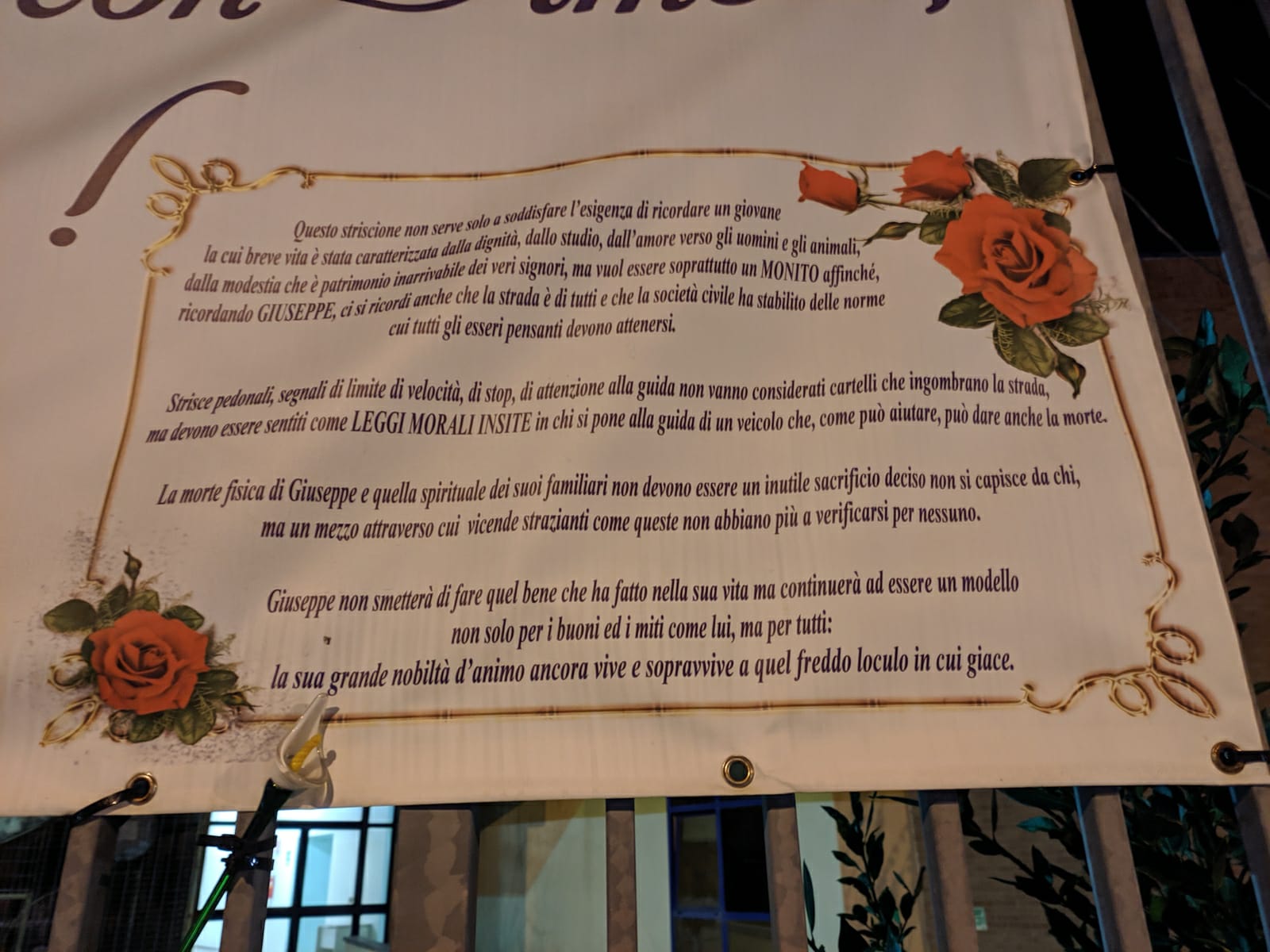 nel punto in cui il giovane medico è stato investito ancora oggi le macchine sfrecciano non rispettando alcun tipo segnaletica, al punto, che Sandra Motti, madre del ragazzo, si è chiesta ieri se sia possibile che la morte di Giuseppe non abbia contribuito a incrementare una maggiore consapevolezza. Il padre, il dott. Gaspare Capone, addolorato, invece, si è chiuso un comprensibilissimo silenzio.