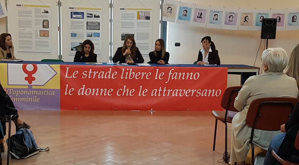 Successivamente la Referente Regionale per la Campania di Toponomastica Femminile Giuliana Cacciapuoti ha marcato la necessità di procedere ad intitolazioni femminili anche nella città di Caserta ed in provincia perché vedere un mondo come nominato tutto al maschile mina l’autostima delle donne mentre un’equa distribuzione dei nomi permette di proporre un mondo equo; tante sono state le donne meritevoli di memoria che hanno contribuito a rendere migliore il mondo in cui viviamo. Intervenuta poi la Presidente della Commissione Pari Opportunità del Comune di Caserta Drusilla De Nicola, commissione nominata nello scorso marzo, la quale ha espresso la necessità di avere donne in ogni ambito lavorativo e cariche istituzionali. Inoltre, ha ricordato che il Codice Civile a seguito della Riforma del diritto di famiglia del 1975 all’art. 143 bis (Cognome della moglie) recita: “La moglie aggiunge al proprio cognome quello del marito e lo conserva durante lo stato vedovile, fino a che passi a nuove nozze”.