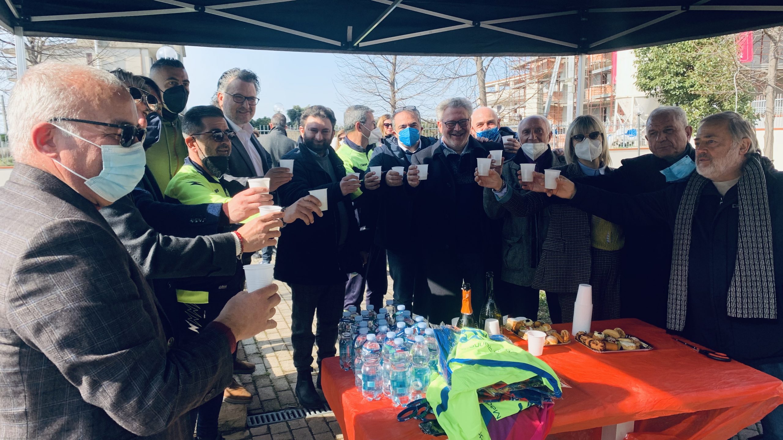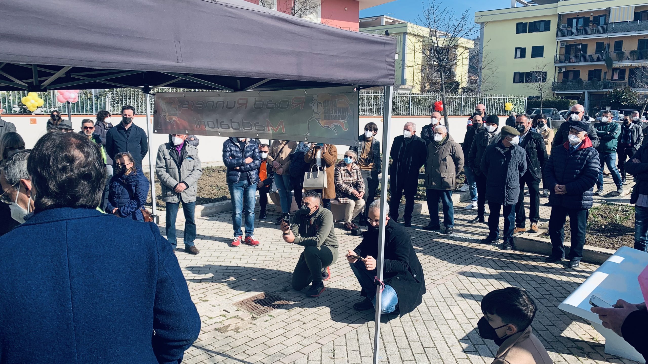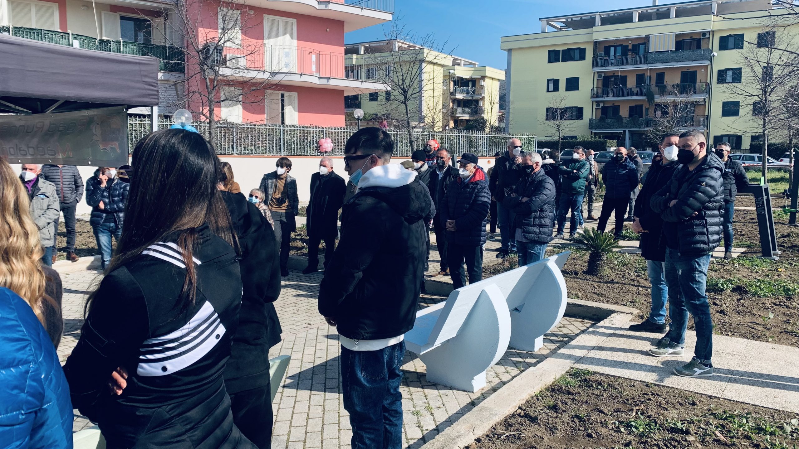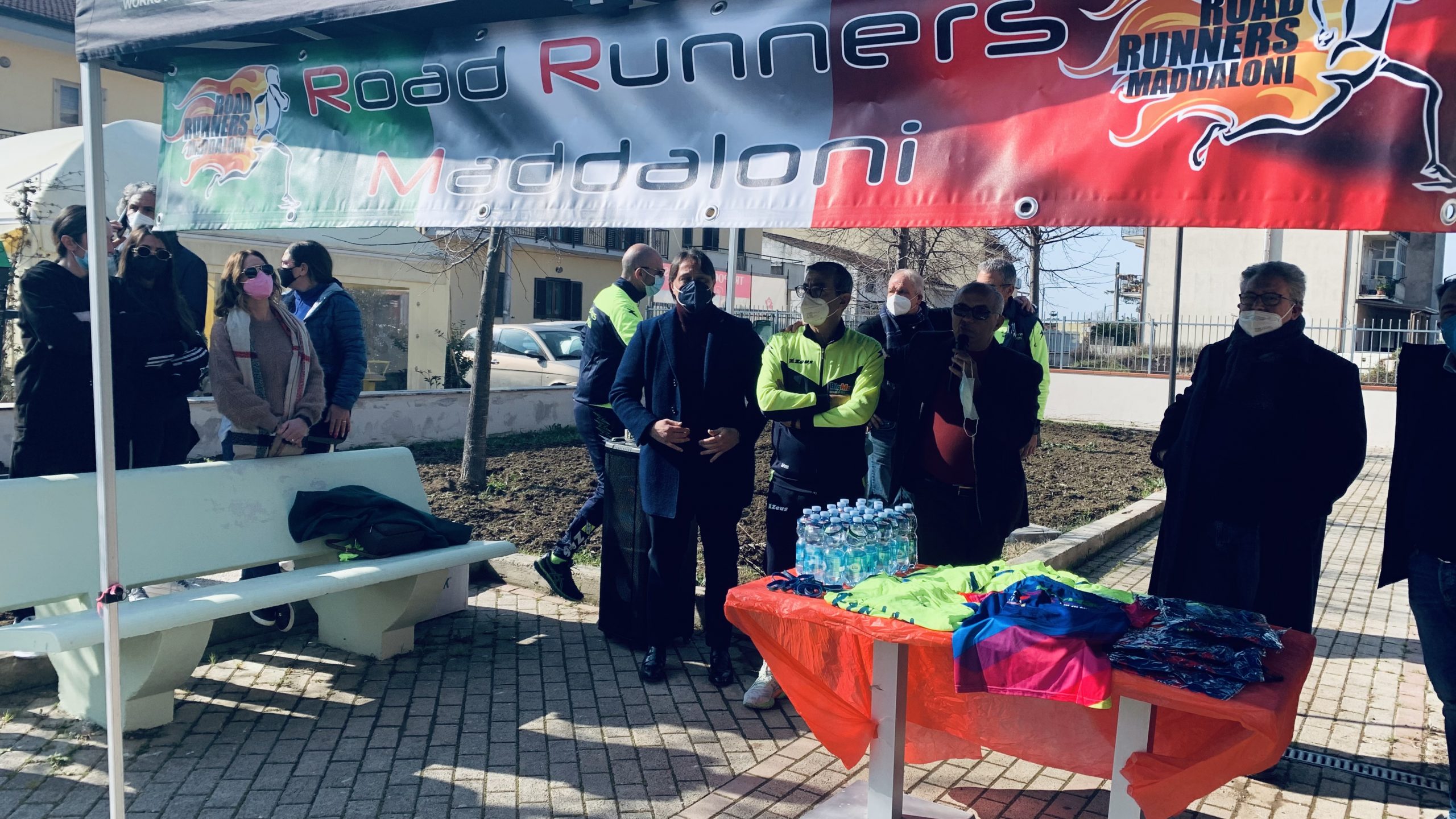 Maddaloni- Un anno di lavoro, impegno, sacrifici per realizzare un sogno progetto che stamattina diventa ufficialmente realtà. In questa domenica di febbraio anticipo di primavera è stato tagliato il nastro della palestra all’aperto situata nell’area verde di via Cornato antistante il bar “Il ritorno” . Un progetto ambizioso, forse un po’ folle, tutto merito della testardaggine dei Road Runners di Maddaloni coprirsi sto dal presidente Michele Campolattano, insieme a Giulio Farina, titolare più del bar, del punto di ritrovo della città. Con loro il dott. Stefano Piccolo, Michele Cupito, tanti volontari e imprenditori che hanno contribuito con sponsorizzazioni, oltre che naturalmente l’amministrazione comunale che fin dal principio ha dato il suo contributo al progetto.