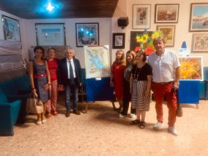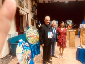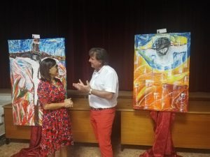 A caratterizzare questo momento di apertura è stata anche la Santa Messa, celebrata dal Vescovo Sua Eccellenza Monsignor Angelo Spinillo, alla quale tutti i visitatori hanno potuto partecipare. Oltre ad ammirare i dipinti e le sculture é stato molto interessante scambiare qualche parola anche con gli artisti esponenti. Osservando i dipinti dell’artista Anna Maria Zoppi é stato impossibile non notare la ricorrenza del Cristo in tanti dei suoi quadri, “ da sempre – come la stessa artista afferma – al centro della sua ricerca”. Anche il confronto con l’artista e regista Raffaele Letizia é stato utile, soprattutto per apprendere quanto iniziative del genere siano “apprezzate dagli stessi artisti, che, nonostante le loro attività professionali , considerino l’arte comunque una loro grande passione”. È stato anche molto bello apprendere il lavoro svolto dalla coordinatrice Assunta Improta, della sezione artistica Artlux, di Arteterapia, nonché artista terapeuta, che guida il lavoro svolto dalle giovani artiste affidate alla Cooperativa Elleuno – Consorzio Italia e presenti all’inaugurazione. Del gruppo Arteterapia Casa Impresa Benessere conosceremo domenica anche la dottoressa Carmen Cimmino, Responsabile Riabilitazione Dipartimento Salute Mentale ASL NA 2 Nord. Nel corso della mostra interverranno, oltre alla curatrice dell’evento artistico