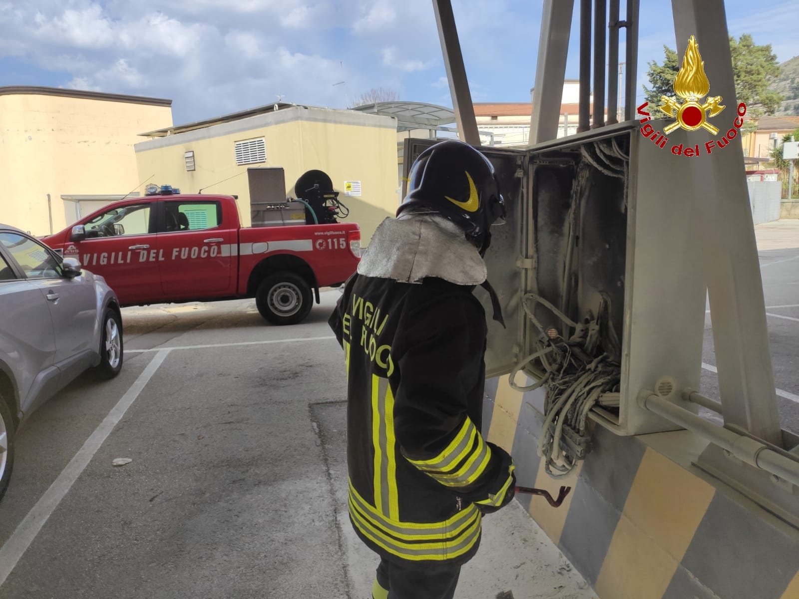 Maddaloni. Questa mattina verso le ore 11:00 una squadra dei Vigili del Fuoco del Comando provinciale di Caserta proveniente dalla sede centrale, è intervenuta nel comune di Maddaloni presso il parcheggio della clinica San Michele per l’incendio del quadro elettrico che alimenta i pannelli fotovoltaici delle tettoie di copertura delle automobili in sosta. Immediatamente giunti sul posto i Vigili del Fuoco hanno subito spento l’incendio con un estintore evitando che le fiamme si propagassero ad un’autovettura hybrida parcheggiata nelle vicinanze, successivamente hanno provveduto alla messa in sicurezza del luogo.