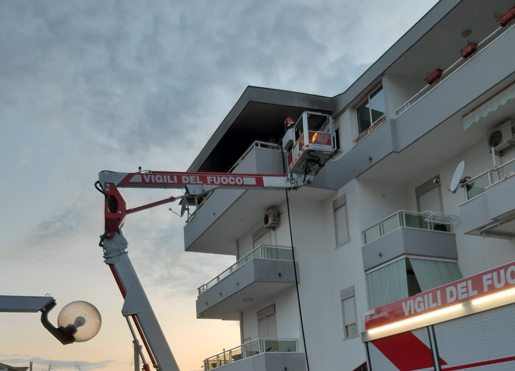 Rimasto intrappolato all’interno della mansarda un pregiudicato agli arresti domiciliari, il quale ha riportato lievi ustioni.