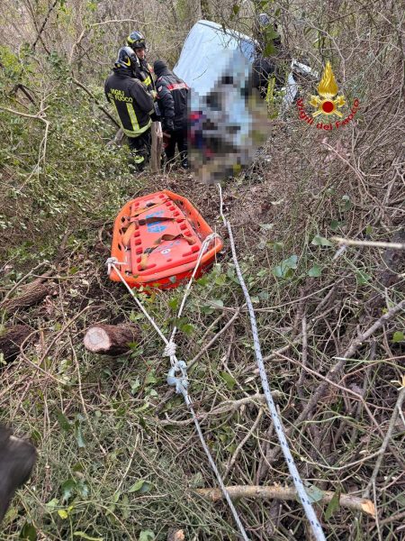 Il personale dei Vigili del Fuoco, dopo aver lavorato incessantemente per crearsi una via d’accesso attraverso la fitta vegetazione,ha provveduto all’estrazione dei due occupanti, utilizzando attrezzature oleodinamiche, affidandoli successivamente alle cure del personale sanitario del 118 intervenuto sul posto con un’ambulanza ed un’eliambulanza Purtroppo, per uno dei due feriti, il personale medico non ha potuto fare altro che constatarne il decesso.