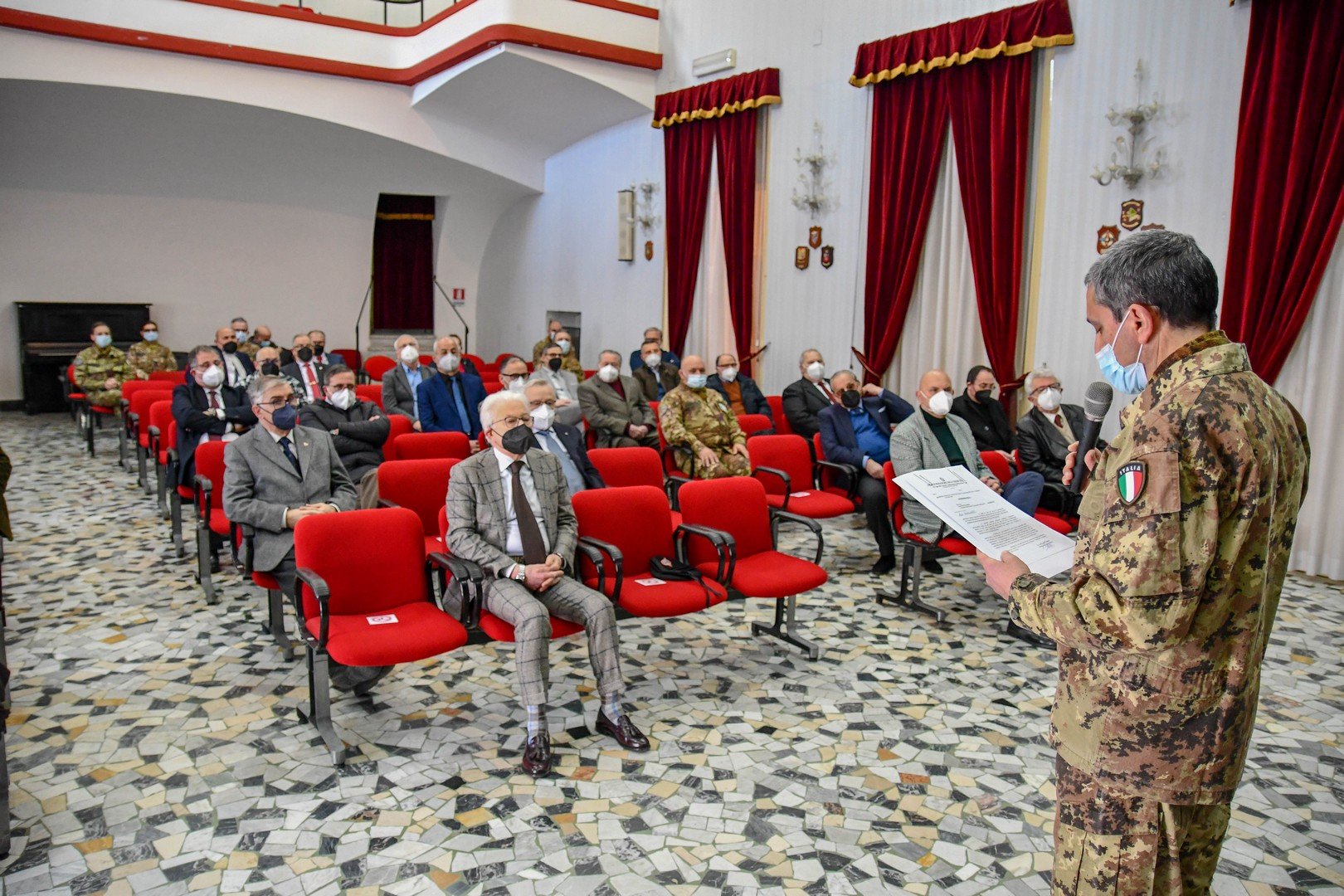 Maddaloni (CE), 24 marzo 2022. Si è tenuto oggi, presso la Scuola di Commissariato (SCUCOM) in Maddaloni, il primo incontro con il personale non più in servizio attivo, residente nella provincia di Caserta. Una giornata nel segno delle tradizioni, figlia dell’entusiasmo e del senso di appartenenza che ha visto la nutrita e commossa partecipazione di più di 50 partecipanti fra ex Comandanti, Ufficiali e Sottufficiali che hanno prestato servizio presso l’Istituto di formazione negli ultimi 15 anni.