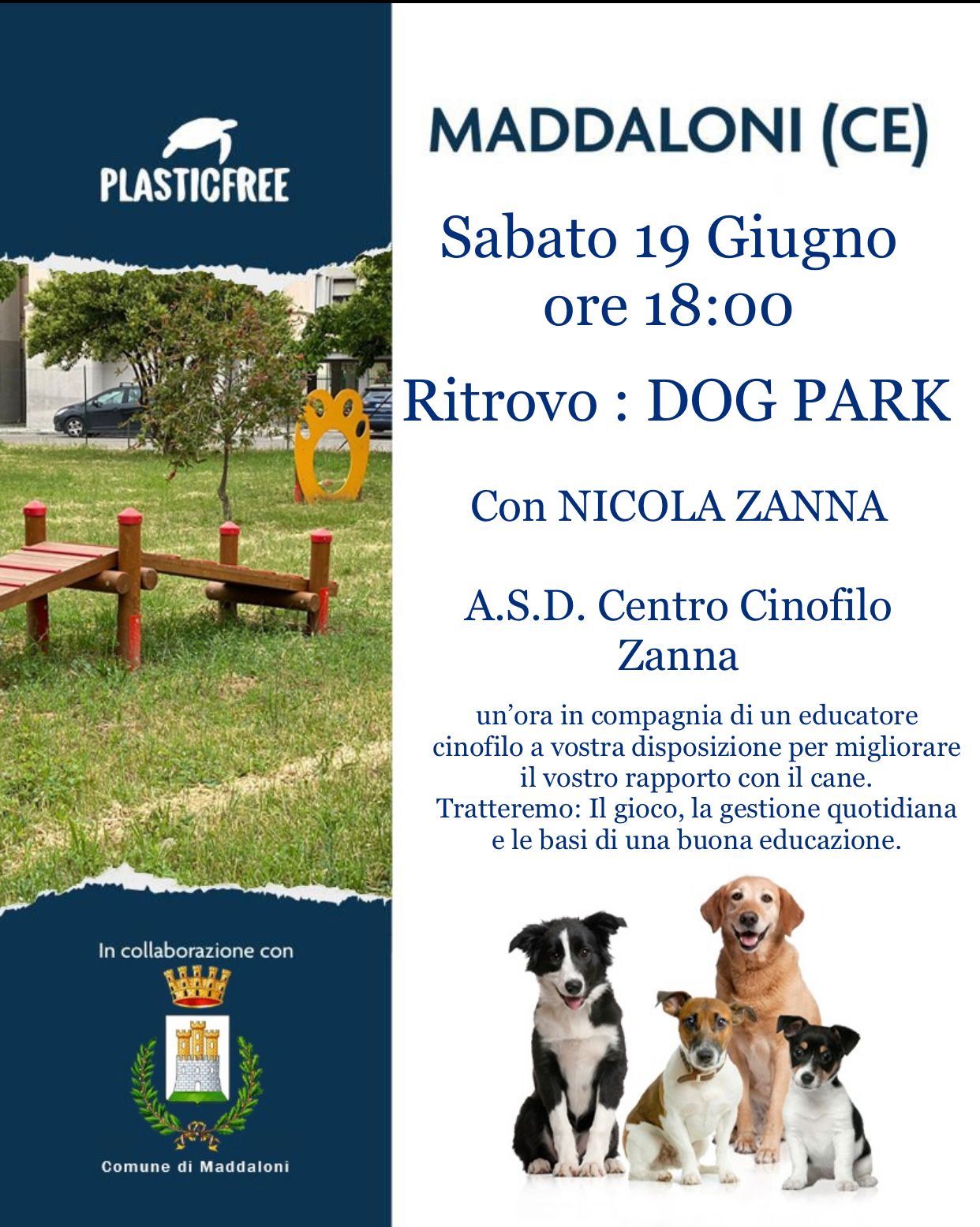 Maddaloni. A una settimana dall’apertura del dog park di via Serao, l’associazione Plastic Free, che gestisce il parco per gli amici a 4 zampe ha già organizzato il primo evento.