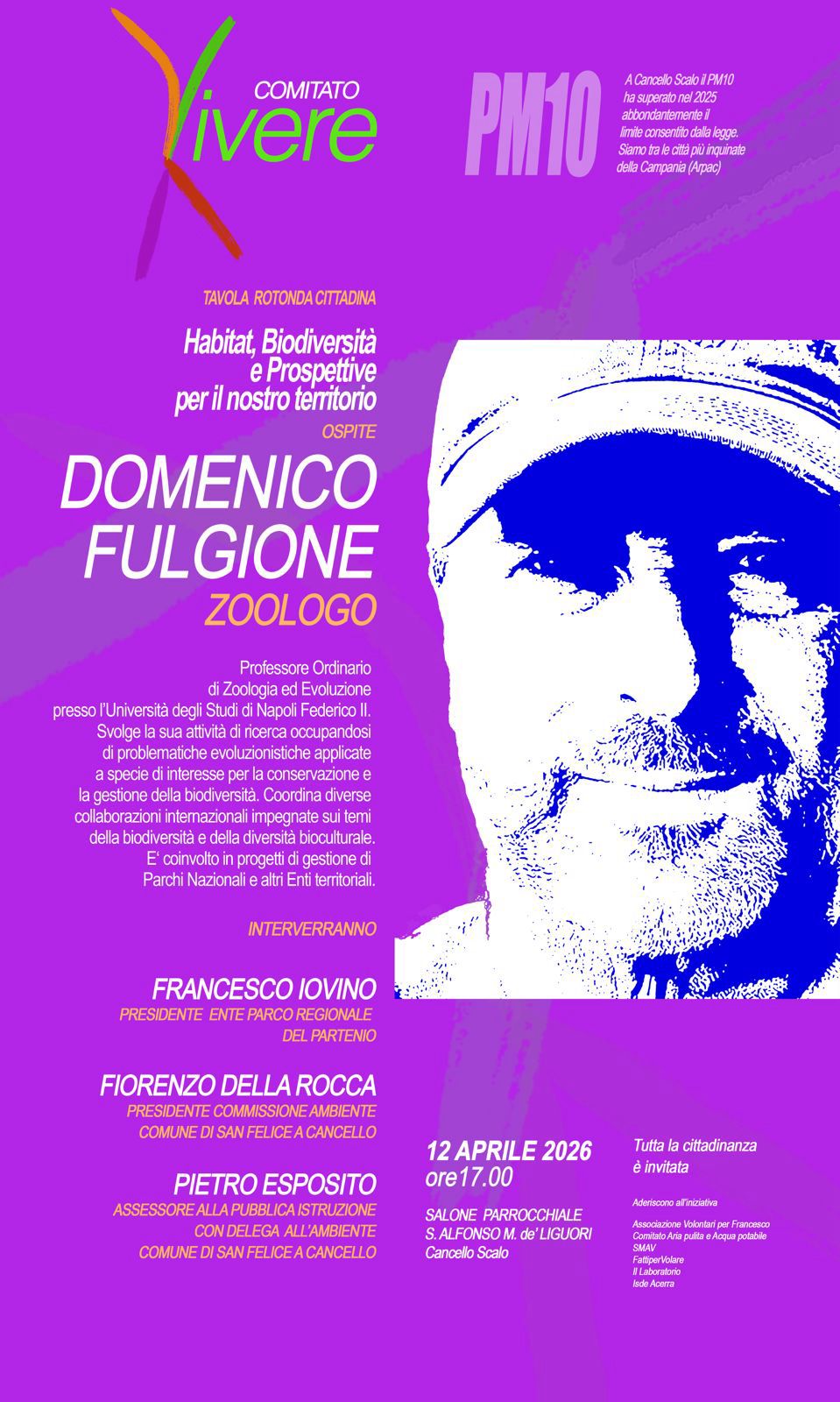 Relatore il Prof. Domenico Fulgione, Zoologo e Professore Ordinario presso l’ Università di Napoli “Federico II”, “ci aiuterà a guardare al nostro territorio con occhi nuovi, analizzandone le criticità e le potenzialità ambientali“.