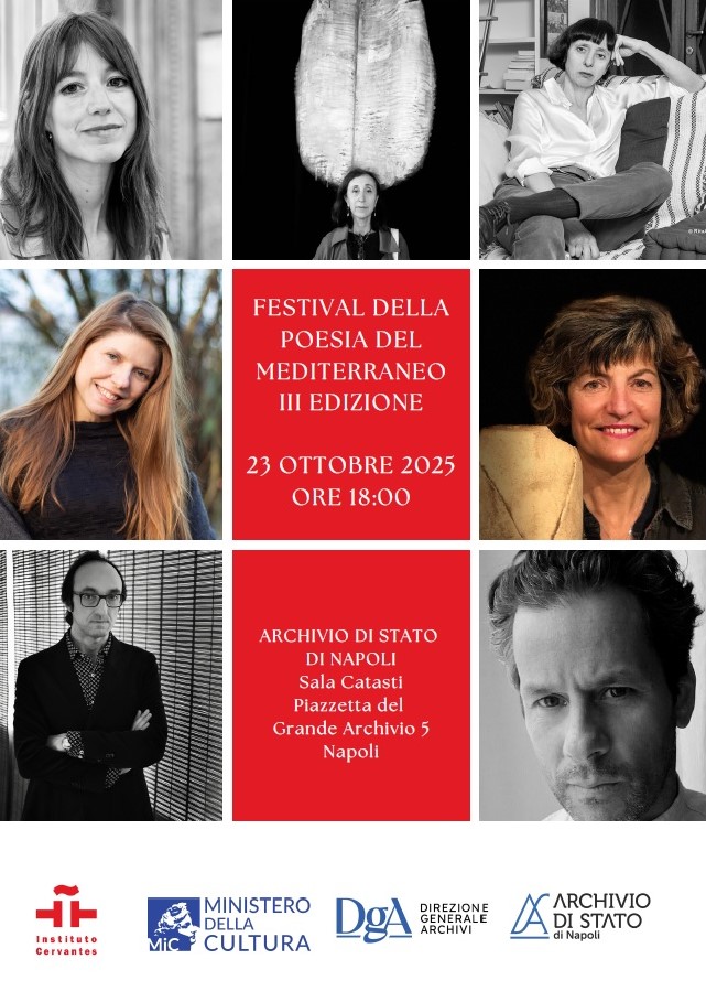 L’Instituto Cervantes presenta la III edizione del Festival della Poesia del Mediterraneo. Giovedì 23 ottobre alle 18, presso la Sala Catasti dell’Archivio di Stato di Napoli (Piazzetta Grande Archivio 5), andrà in scena un recital poetico con autori italiani e spagnoli. Sette poeti e scrittori che si alterneranno nella lettura delle loro opere per celebrare la varietà linguistica e la diversità culturale di Spagna e Italia. Due paesi dalla ricchissima tradizione poetica, uniti nel corso dei secoli da viaggi, connessioni e vicissitudini culturali.