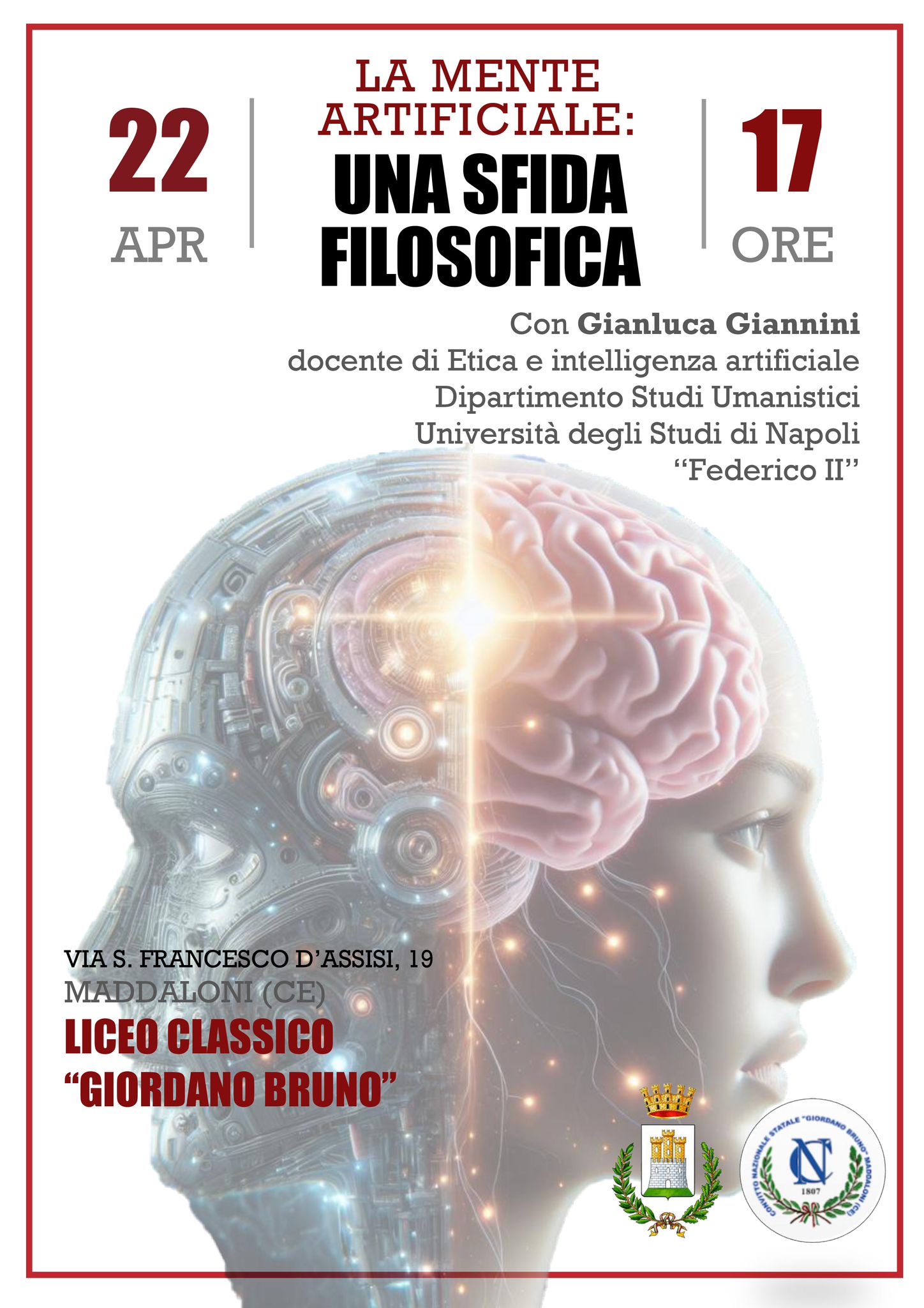 Mercoledì 22 aprile alle ore 17, presso la Sala Settembrini del Convitto Nazionale “Giordano Bruno” di Maddaloni, si terrà l’incontro con il professor Gianluca Giannini, docente di Etica dell’Intelligenza Artificiale presso l’Università degli Studi di Napoli “Federico II” e coordinatore scientifico della Task Force Human&Future, tra le principali figure di
