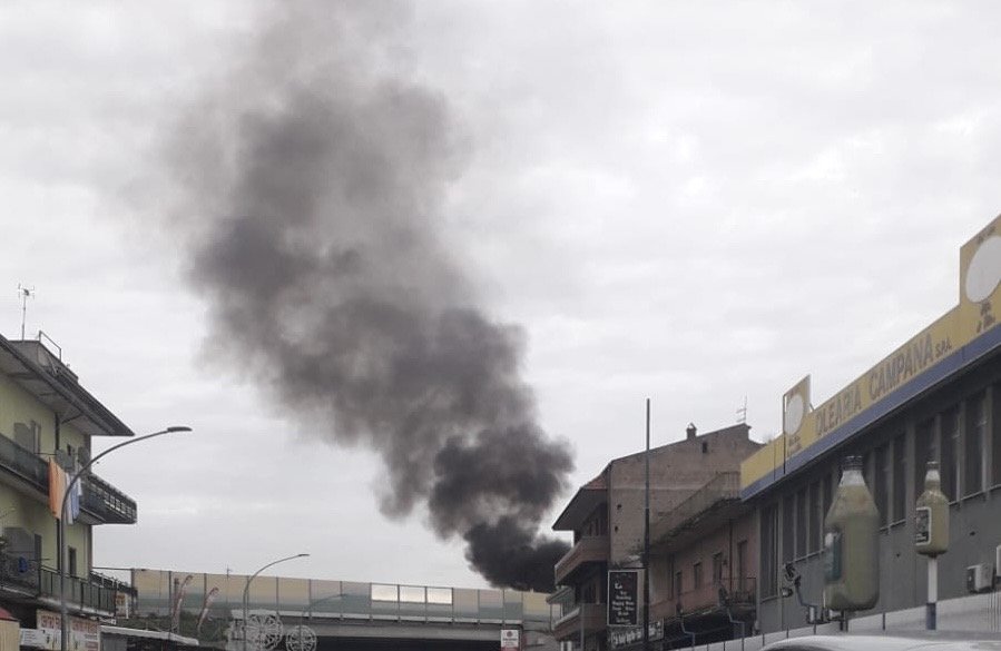 Caserta. Momenti di caos sulla Nazionale , un’ intensa nube nera in questo momento si innalzata al cielo proveniente dal ponte che si trova fra Casapulla e Santa Maria Capua Vetere.