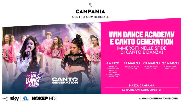 A marzo Piazza Campania diventa il palcoscenico del Campania Talent Show, un grande evento dedicato alla danza e alla musica che accende i riflettori sui nuovi talenti emergenti. Quattro appuntamenti imperdibili trasformano il Centro Commerciale Campania in un vero hub di spettacolo, visibilità e opportunità concrete per artisti e performer.