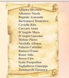 Affino Silvestro , Albanese Nicola , Bagnale Armando, Bartemucci Domenico , Coviello Rita , Cuccaro Anna , D’Angelo Mara , D’Angiò Giacomo, Melone Pietro ,Nicolella Alfonso , Palazzo Caterina ,Ranucci Ennio,Renzi Aldo, Rocco Ciro , Scala Pasqualina , Tagliafierro Giuseppe , Zammarelli Eleonora.