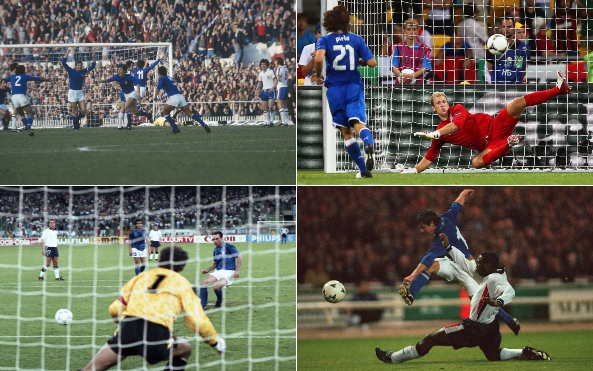 Per l’Italia 4 mondiali in bacheca, 1934, 1938, 1982 e 2006, L’Inghilterra un solo mondiale vinto anno 1966 il gol fantasma di Hurst con la palla che non ha oltrepassato la linea ma che la cui convalidazione diventa decisiva ai fini del risultato.