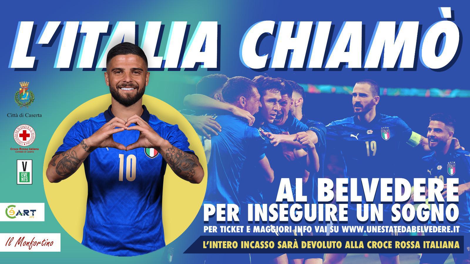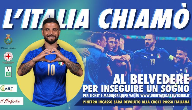 Caserta . Domenica 11 luglio 2021 alle ore 21 ,la Nazionale Italiana giocherà la finale del campionato Europeo contro l’ Inghilterra . Per l’ occasione il Comune di Caserta ,in collaborazione con la CRI-sezione di Caserta e con la società Event di Massimo Vecchione, ha organizzato presso la splendida e suggestiva location del Belvedere di San Leucio una serata all’insegna dello sport e del divertimento.