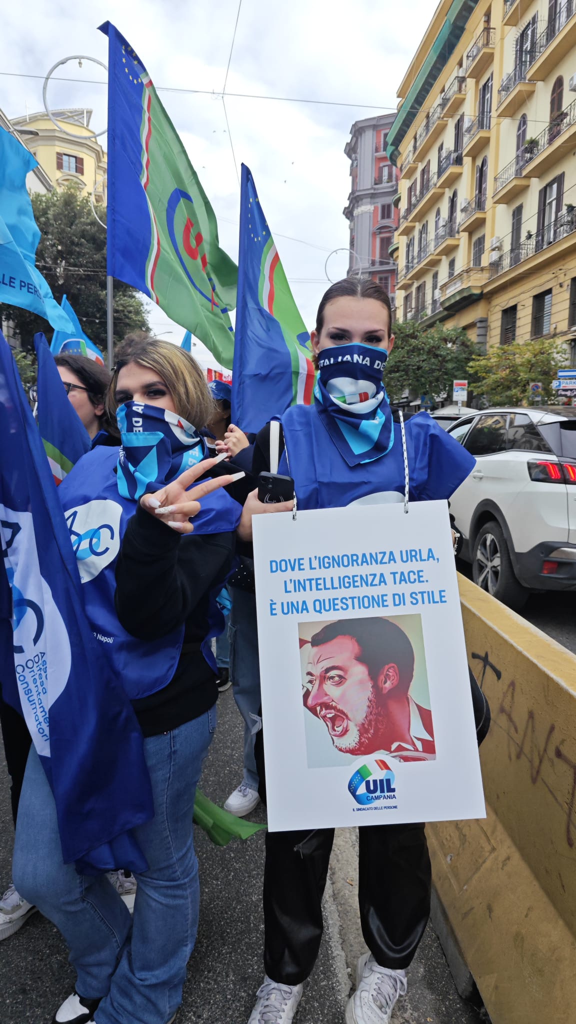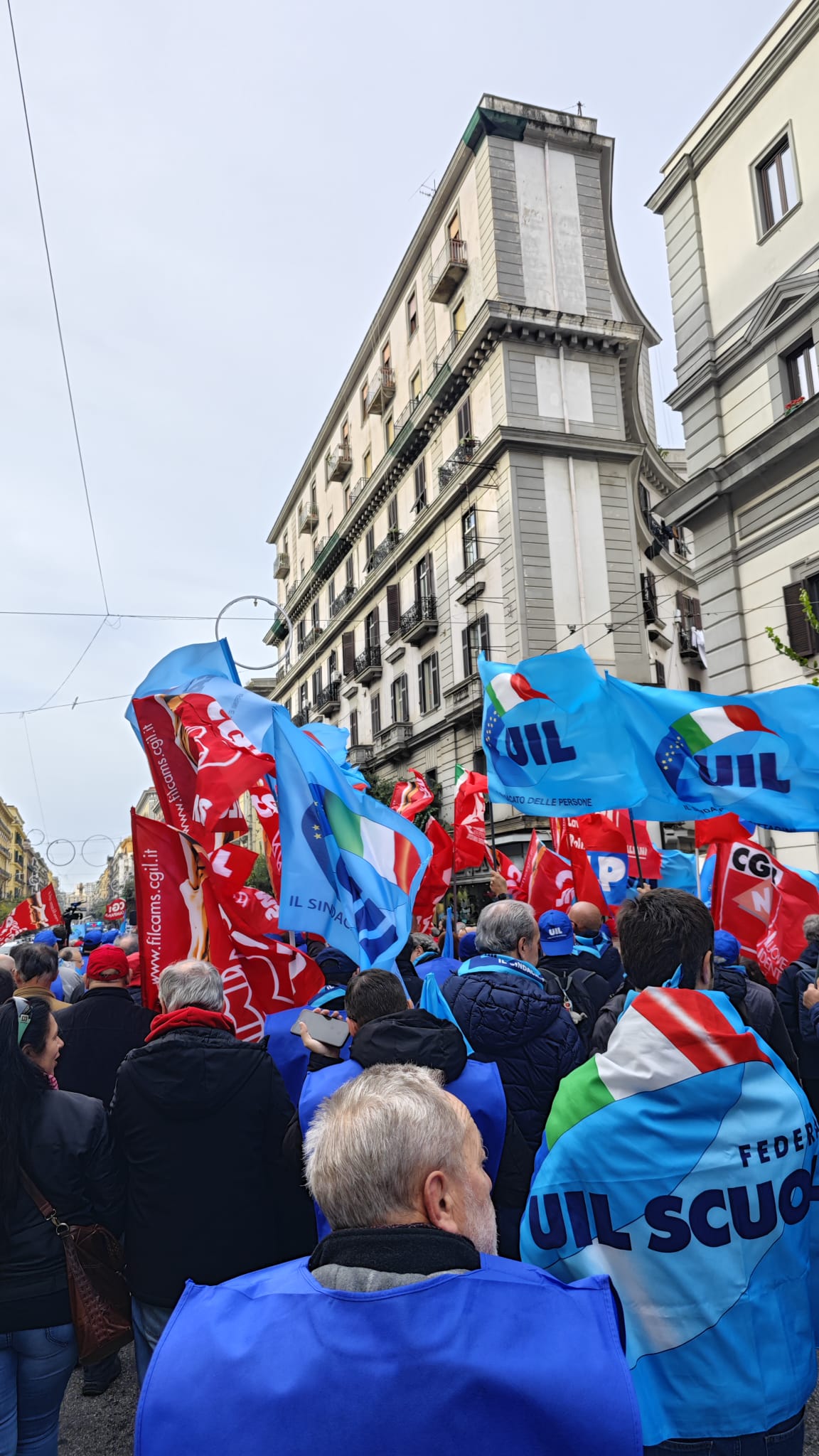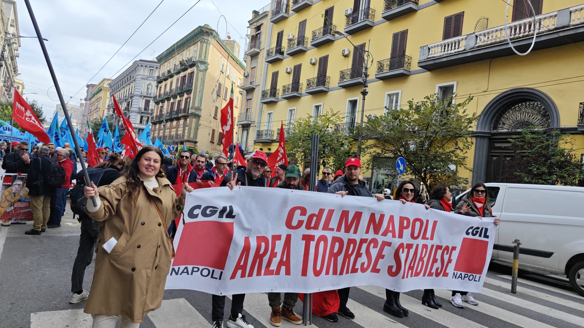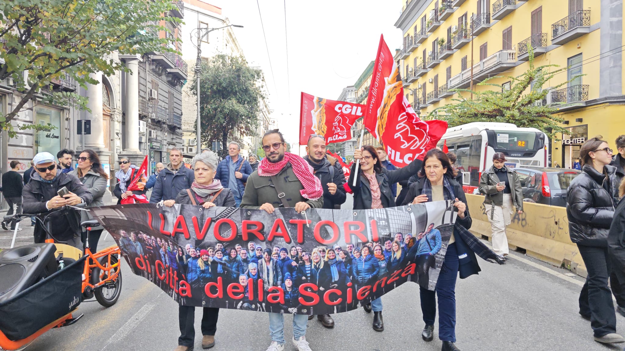 <<Siamo lavoratori, siamo insieme a Landini, aderiamo allo sciopero e alla manifestazione, perché riteniamo giusto batterci per tutti quelli che sono i nostri diritti, inviolabili costituzionalmente, ma che stanno cadendo per colpa di un governo tanto cattivo nei nostri confronti>>- hanno sostenuto i lavoratori di città della scienza.