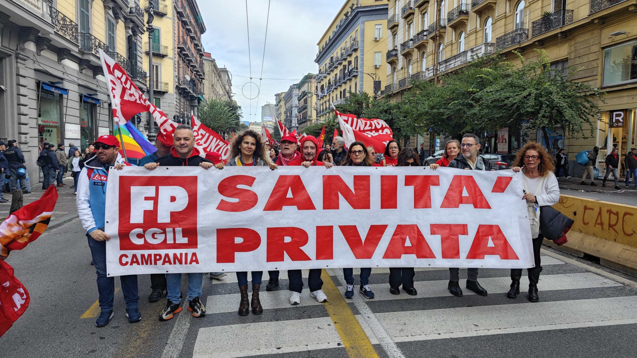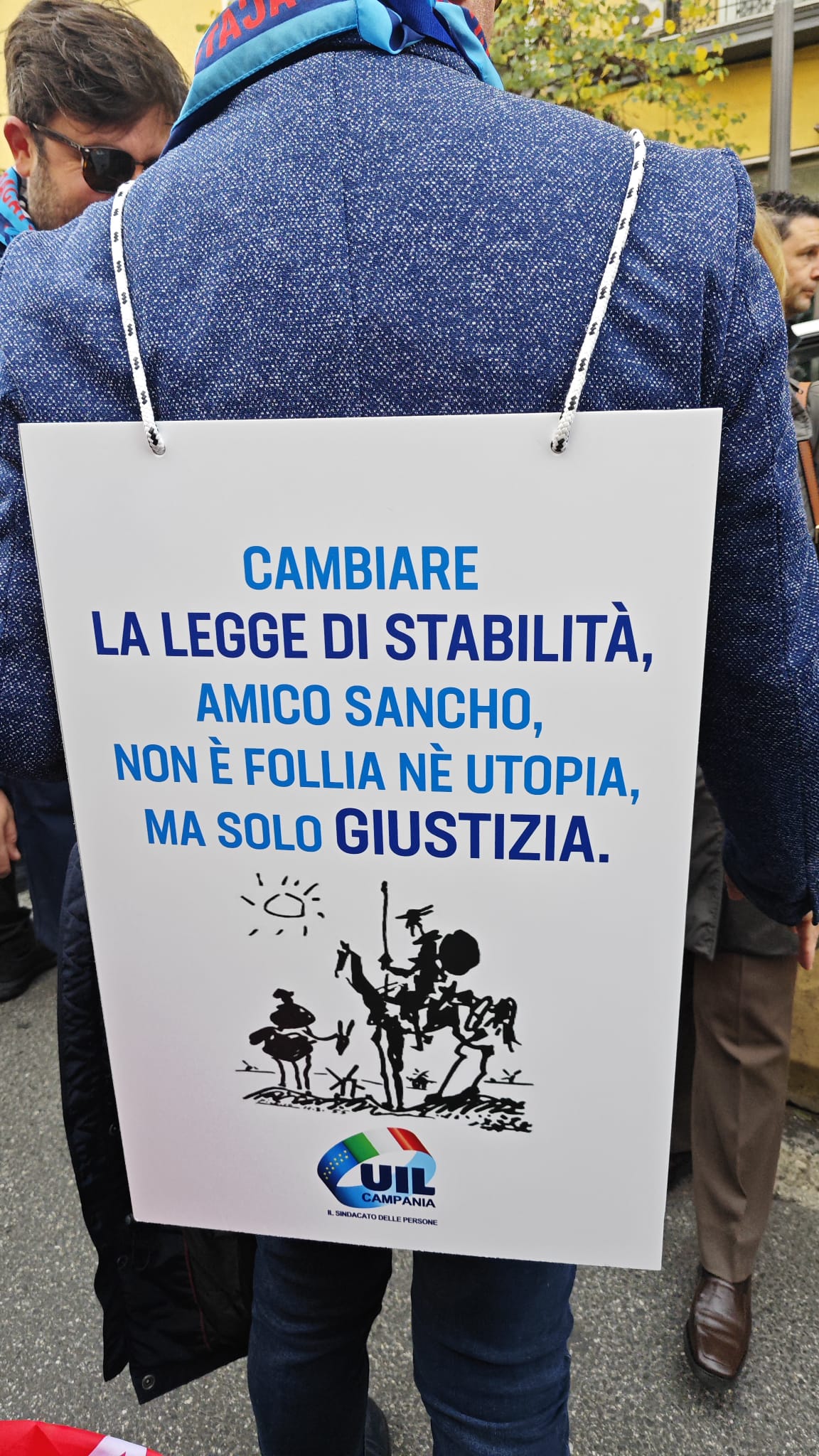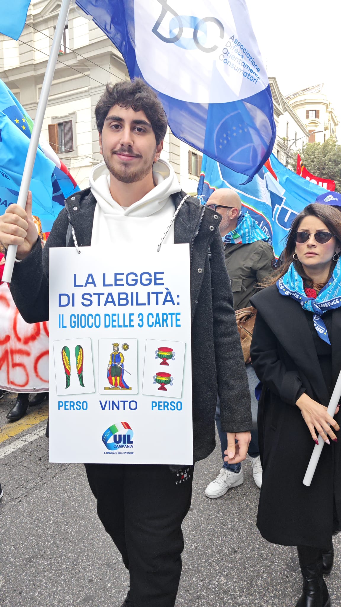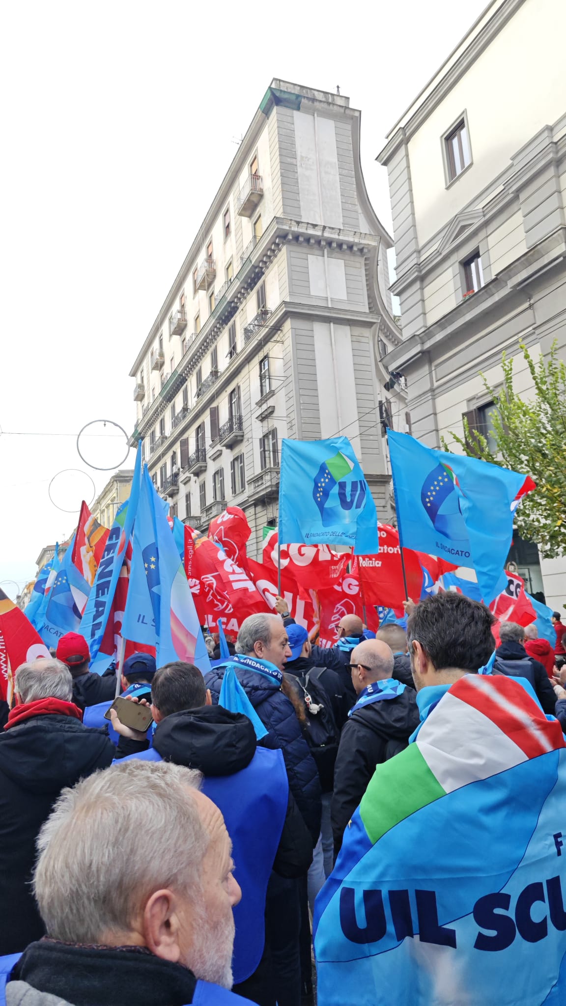 <<Siamo lavoratori, siamo insieme a Landini, aderiamo allo sciopero e alla manifestazione, perché riteniamo giusto batterci per tutti quelli che sono i nostri diritti, inviolabili costituzionalmente, ma che stanno cadendo per colpa di un governo tanto cattivo nei nostri confronti>>- hanno sostenuto i lavoratori di città della scienza.