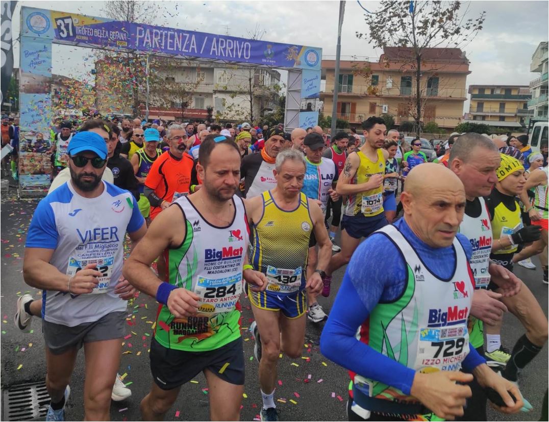 Epifania all’insegna dello sport e della tradizione ad Acerra, dove martedì 6 gennaio 2026 si è disputata la 37ª edizione del Trofeo della Befana, storica corsa su strada che ha richiamato oltre 1000 podisti da tutta la Campania e dalle regioni limitrofe. La manifestazione, organizzata dalla ASD Atletica 88 Acerra guidata dal presidente Antonio Zito, si è svolta su un suggestivo circuito cittadino di 10 chilometri circa con partenza e arrivo in Piazza Calipari. Nella fredda e pioviginosa mattinata acerrana a imporsi nella gara maschile è stato Yahya Kadiri (Carmax Camaldolese), che ha tagliato il traguardo per primo con il tempo di 30’00”, precedendo il compagno di squadra Ali Akinou (30’22”) e Abdelmajid Benrkia (30’45”), tesserato Runcard. Al femminile continua il dominio delle sorelle Palomba: Francesca ha conquistato la sua prima vittoria del 2026 fermando il cronometro su 35’47”, davanti a Filomena (37’12”). A completare il podio Grazia Razzano in 38’39”. Tutte e tre le protagoniste hanno difeso i colori gialloblù della Caivano Runners, regalando alla società un podio tutto interno. La gara, molto sentita nel panorama podistico regionale, ha ricordato anche la figura di Giovanni Zito, esempio di valori umani e sportivi. Nella classifica riservata alle società il primo posto è andato alla Amatori Vesuvio. La manifestazione si è svolta con il patrocinio del Comune di Acerra e sotto l’egida dell’A.S.C., con classifiche curate da GarePodistiche e il racconto tecnico della mattinata affidato alla voce di Gennaro Varrella. Un’edizione partecipata e riuscita che conferma il Trofeo della Befana come uno degli appuntamenti più amati del folklore podistico campano.
