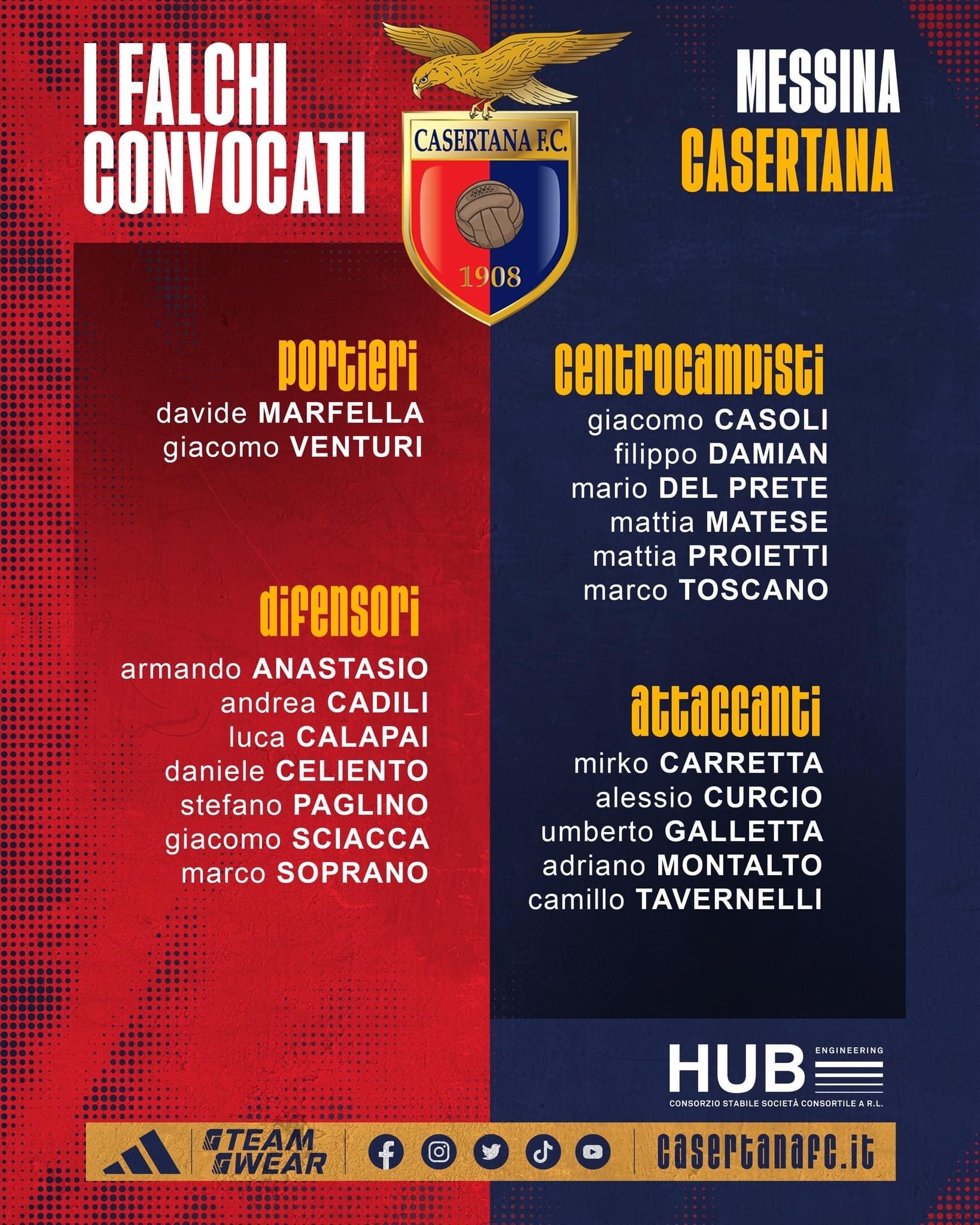 Domani sera la Casertana sarà di scena a Messina per il recupero della seconda giornata di campionato. Per i falchetti ci sarà l’opportunità di migliorare ancora di più la propria classifica. Il più atteso sarà sicuramente Curcio autore di un inizio di stagione clamoroso. Il Messina dal canto suo dovrà cercare di muovere anche lei una classifica non disastrosa ma neanche che ti lascia stare tranquilla. Mancheranno alla sfida Turchetta e Taurino