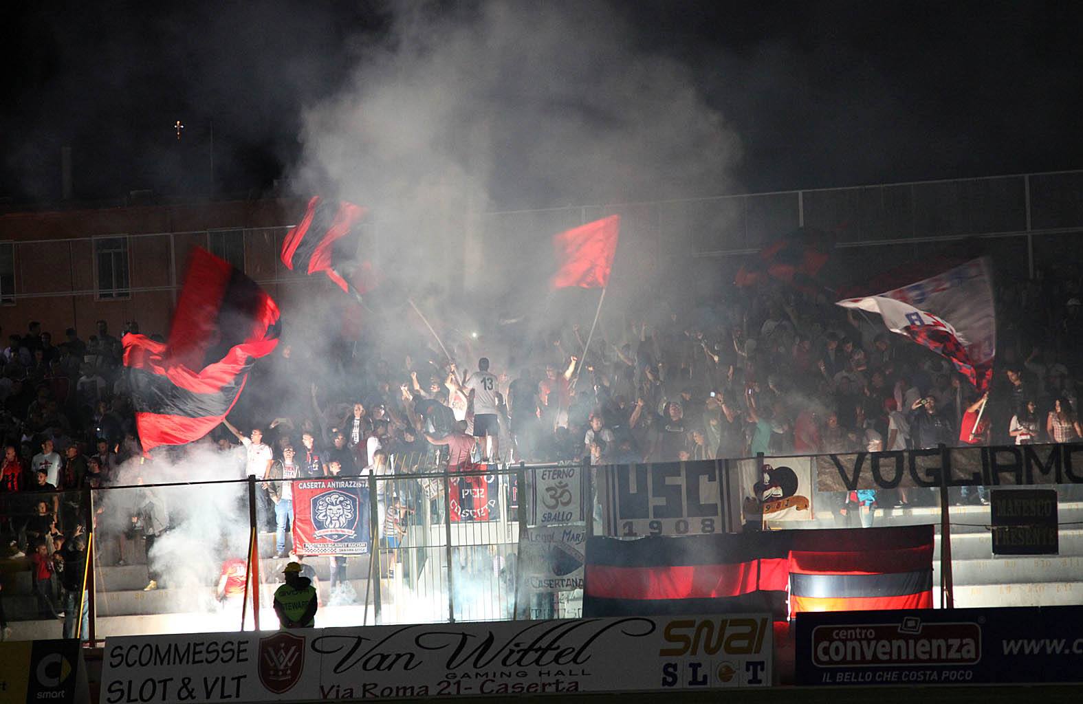 La Casertana matura solo un pari a Giugliano, pari che consente agli uomini di mister Iori di allungare a +7 sul Messina. Sempre in merito di classifica, da notare che il Latina è a soli 2 punti di vantaggio per la salvezza diretta. I falchetti hanno comunque confermato il loro miglioramento rispetto a metà stagione, la manovra è più fluida e la squadra è più partecipe al gioco offensivo. La prestazione di oggi è stata bella a metà: ottima nel primo tempo, troppo timida nella ripresa. Le squadre mostrano uno speculare 4-2-3-1 e il gioco è scorrevole sin dalle prime battute. Prima chance al 3’ con Vano, che, abbastanza defilato, riesce ad ottenere solo un corner. Risponde al 6’ Balde: facile parata di Zanellati. All’ 11’ una rimessa laterale apparentemente innocua di Heinz provoca una fantastica rovesciata in area di Bunino per lo 0-1. Il Giugliano non si fa intimorire, tanto che una punizione di De Rosa viene sventata ottimamente da Zanellati in angolo (12’). Segue un buon momento per i gialloblù, più volte vicini al pari (18’ Padula, 19’ De Rosa). Al 26’, infatti, Bacchetti tocca con la mano in area un cross di Njambe: rigore che lo stesso camerunense trasforma. Al 33’ “torre” di Njambe per la girata di Padula che non sorprende Zanellati. Al 39’ traversone di Heinz per Egharevba, che mette fuori. Alla ripresa, Giugliano più aggressivo della Casertana. Le occasioni sono comunque poche e le squadre sembrano accontentarsi del pareggio. Al 57’ conclusione di Valdesi sul fondo. Al 68’ altra discesa di Valdesi sulla destra, che trova solo un angolo. Al 79’, poi, un cross di Paglino viene ribattuto, la palla arriva a Ciano, che non concretizza. Il punteggio permane sull’ 1-1, un pari dal sapore agrodolce che fa contento più il Giugliano per la conquista dei playoff, molto meno la Casertana per blindare la salvezza e per allontanare la minaccia siciliana. Ora altra trasferta, stavolta a Potenza, dove i falchetti si giocheranno un jolly: il Messina, infatti, riposerà. Sguardo pure al Latina, la più in difficoltà delle tre. Cerchiamo di chiudere prima possibile il discorso salvezza, poi si penserà alla ricostruzione della squadra per il prossimo anno.