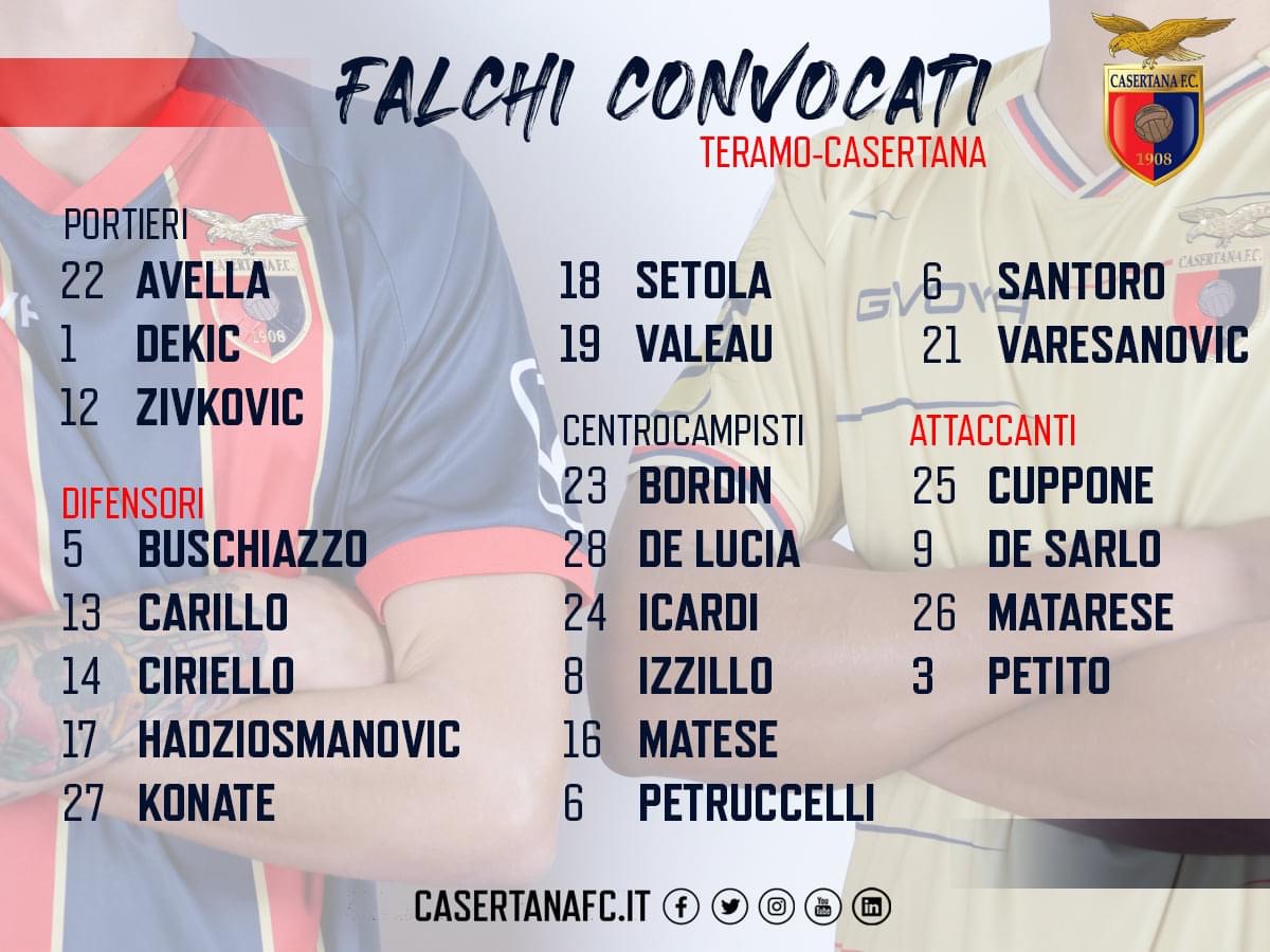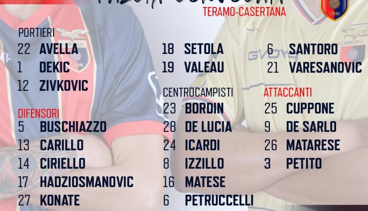 Casertana: Dekic; Hadziosmanovic, Buschiazzo, Carillo, Valeau; Bordin, Santoro, Icardi; Izzillo, Cuppone, Matarese.