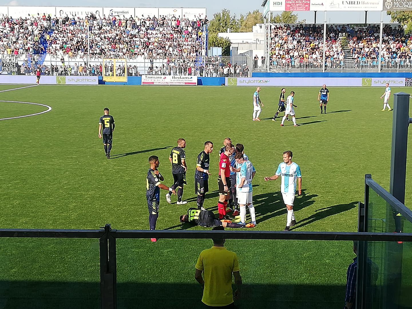 Ecco cosa è accaduto nel match giocato allo stadio di Brindisi S. Giovanni Paolo II, con inizio dalle ore 16.30: dopo alcuni minuti ci prova Zito con un tiro appena dentro l’area, palla respinta dalla traversa.