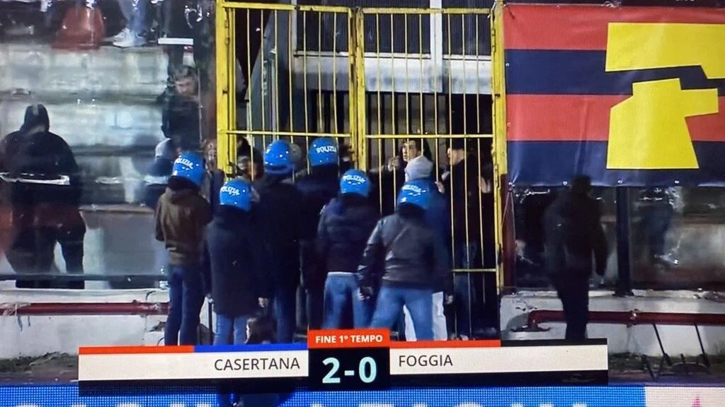 La Casertana vince la sua settima partita nelle ultime otto contro il Foggia (2-1), ma quello che ricorderemo da questa partita sono gli stupidi e puerili scontri tra le tifoserie. Già a primo tempo inoltrato e per tutto l’intervallo si sono verificate intolleranze e scontri tra le due tifoserie che hanno portato l’arbitro a rinviare più volte l’inizio del secondo tempo, iniziato infatti con quasi 45’ di ritardo. Questi scontri hanno avuto luogo verosimilmente per dei petardi lanciati dalla tifoseria del Foggia, che hanno scatenato la rabbia di quelli della Casertana. Ferito e portato in ospedale un tifoso rossoblù. Parliamo di sport che è meglio. La Casertana gioca una partita quasi perfetta, mettendo i rispettabili avversari alle corde per tutto il primo tempo e parte del secondo. Il gol dell’1 a 0 al 26’, quando Montalto mette dentro una respinta del portiere ospite Nobile a sua volta causata da un bel tiro dello splendido e incontenibile Tavernelli. I falchetti continuano a dominare, tanto che arriva ben presto il 2 a 0 (38’) grazie all’ennesima prodezza del rientrante e insostituibile Curcio. Al calare del primo tempo altre occasioni dei rossoblù, molto vicini al terzo gol (Curcio e Sciacca). Nel secondo tempo partita più equilibrata, con le prime occasioni pugliesi (Frigerio). La Casertana è accorta in difesa, ottenendo buone occasioni in contropiede (Tavernelli e Calapai). Negli ultimi minuti Foggia molto pericoloso, tanto che arriva il gol di Schenetti (85’) a rendere il finale ricco di alta tensione per gli uomini di Cangelosi. Il Foggia, però, non riuscirà nell’intento di pareggiare, finendo tra l’altro in dieci per il secondo giallo a Riccardi (91’). Casertana che sale così al terzo posto a -5 dalla capolista Juve Stabia e a -2 dalla sorpresa Picerno. Superata in classifica la corazzata Benevento. Proprio contro il Picerno, in terra lucana, avrà luogo l’8 dicembre la prossima partita. Lì si capirà se i falchetti potranno puntare realmente alla promozione. Focalizziamo l’attenzione però sulla Casertana e non su alcuni casertani.