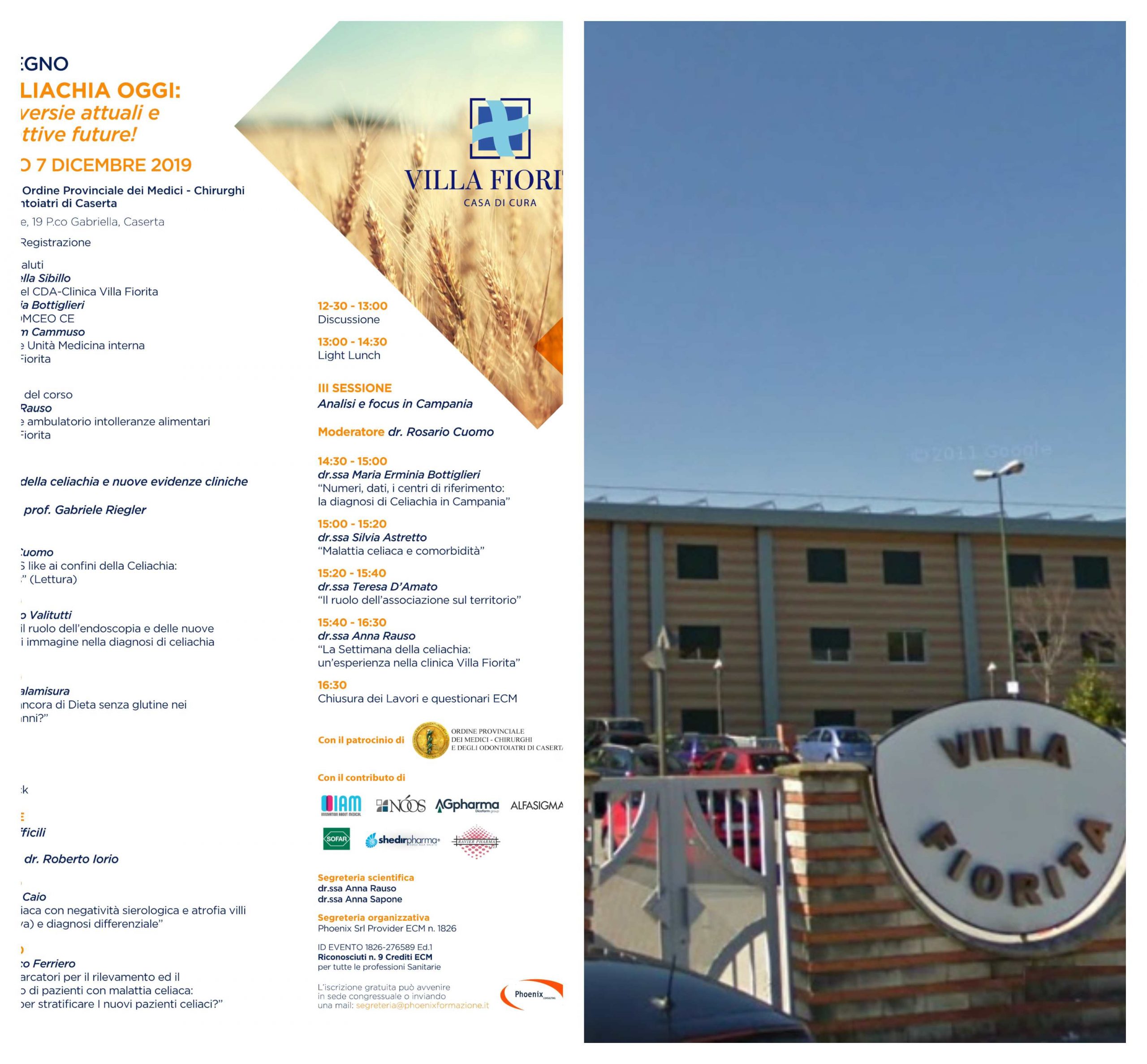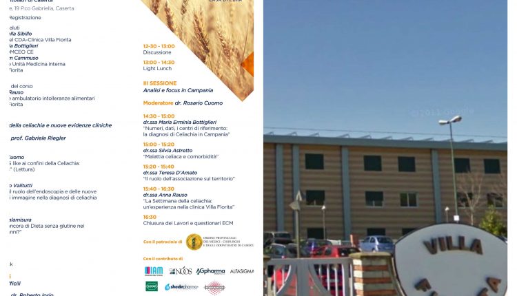 Evoluzione della celiachia e nuove evidenze cliniche, diagnosi difficili, analisi e focus in Campania sono i temi delle diverse sessioni del convegno dal titolo “La Celiachia oggi: controversie attuali e prospettive future!”, promosso dalla Casa di Cura Villa Fiorita di Capua per la giornata di domani, sabato 7 dicembre, nell’aula magna dell’Ordine provinciale dei Medici – Chirurghi e degli Odontoiatri di Caserta che ha concesso il patrocinio all’iniziativa.
