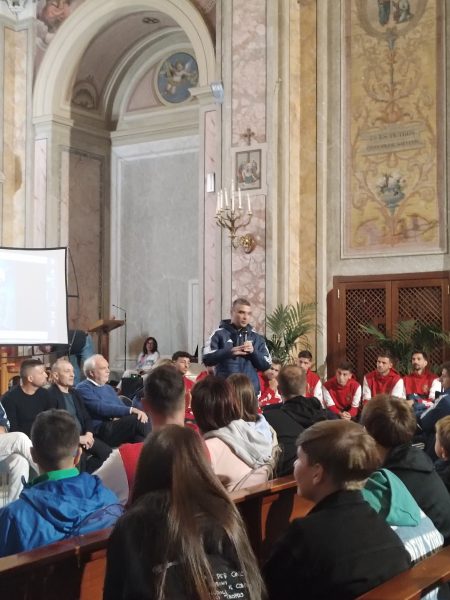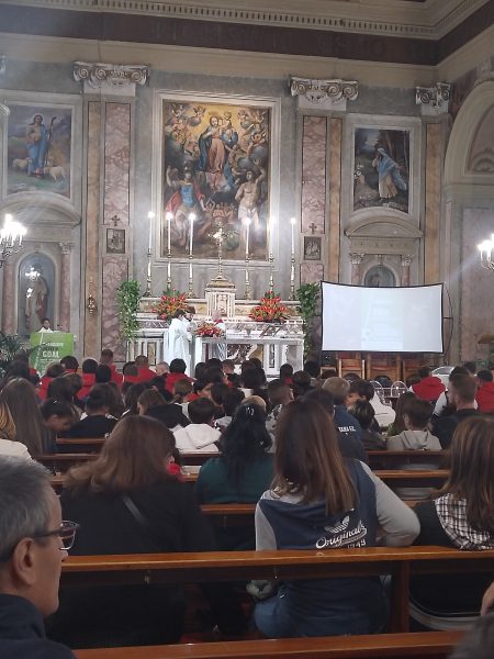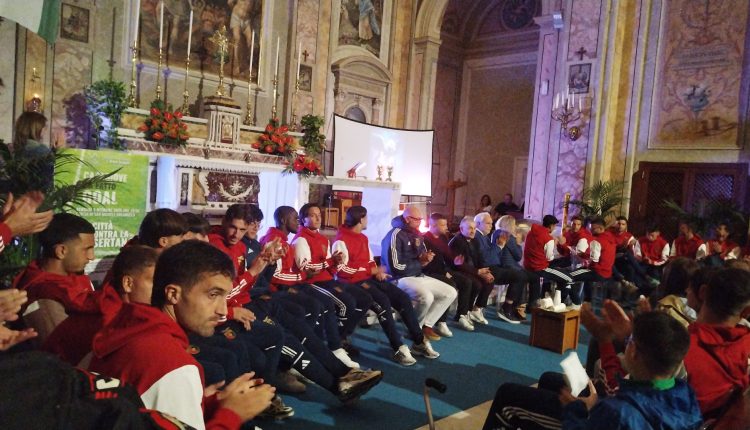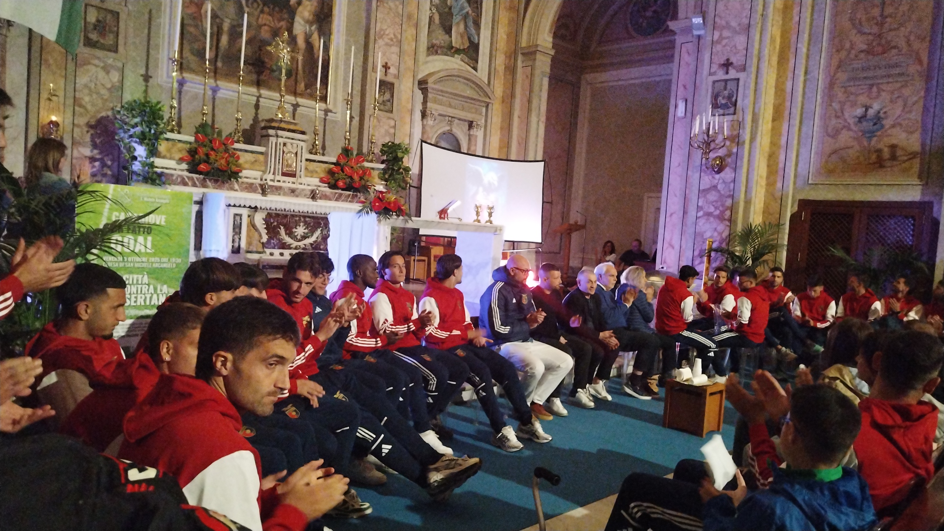 Casagiove. Nell’ambito del progetto di patto educativo sociale, tra scuola, famiglia e chiesa, i calciatori e lo sfaff tecnico della Casertana, hanno preso parte, quest’oggi, venerdì 3 Ottobre, alla Celebrazione Eucaristica delle 19.30, presso la Parrocchia di San Michele Arcangelo, grazie all’iniziativa del Parroco, Don Stefano Giaquinto, che ha fornito l’occasione ai giovani di dialogare con i calciatori, riflettendo insieme e dire con forza: “Riprendiamoci la nostra vita”